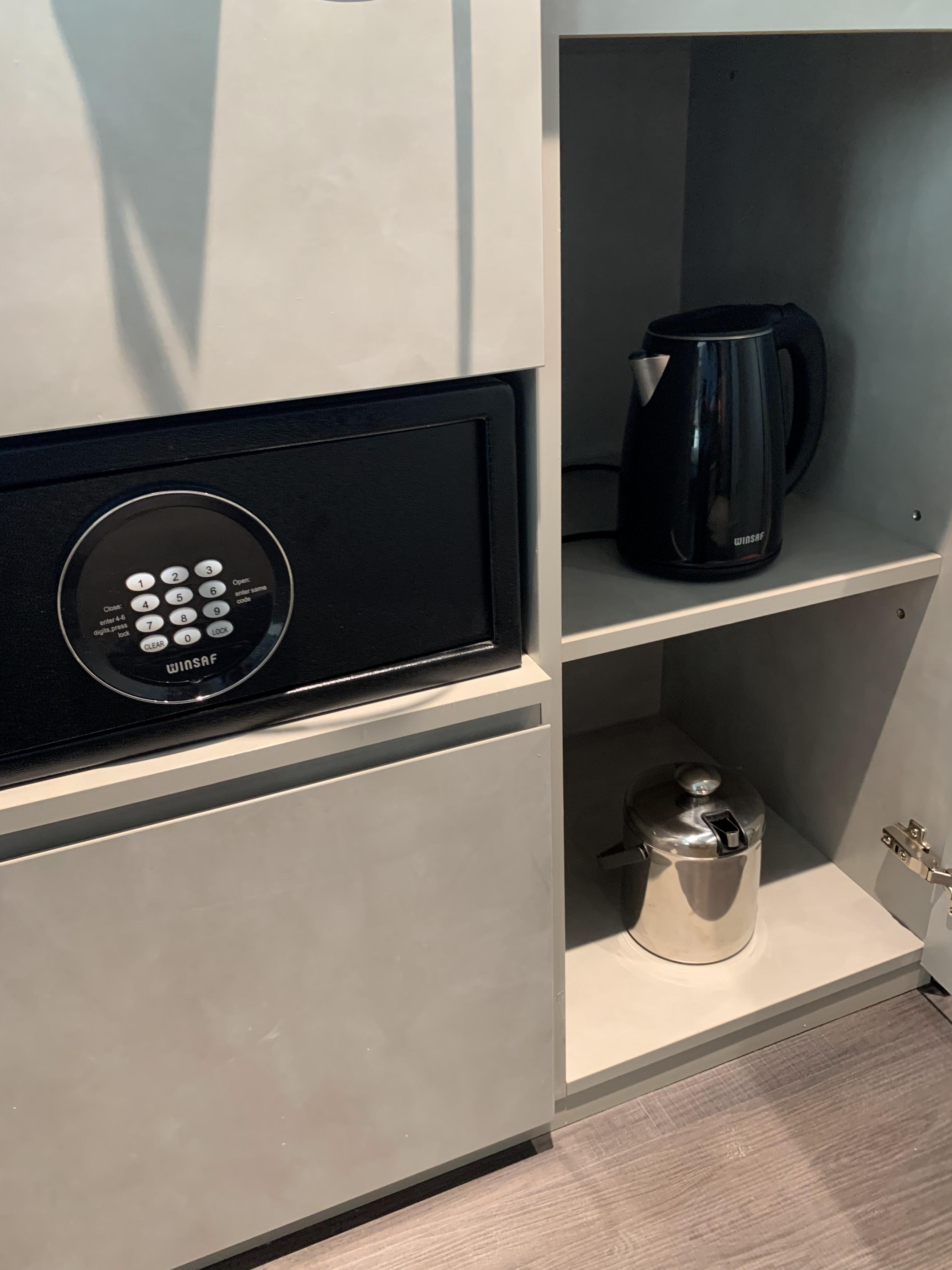 금고와 커피포트, 얼음을 담을 수 있는 버킷도 있다.