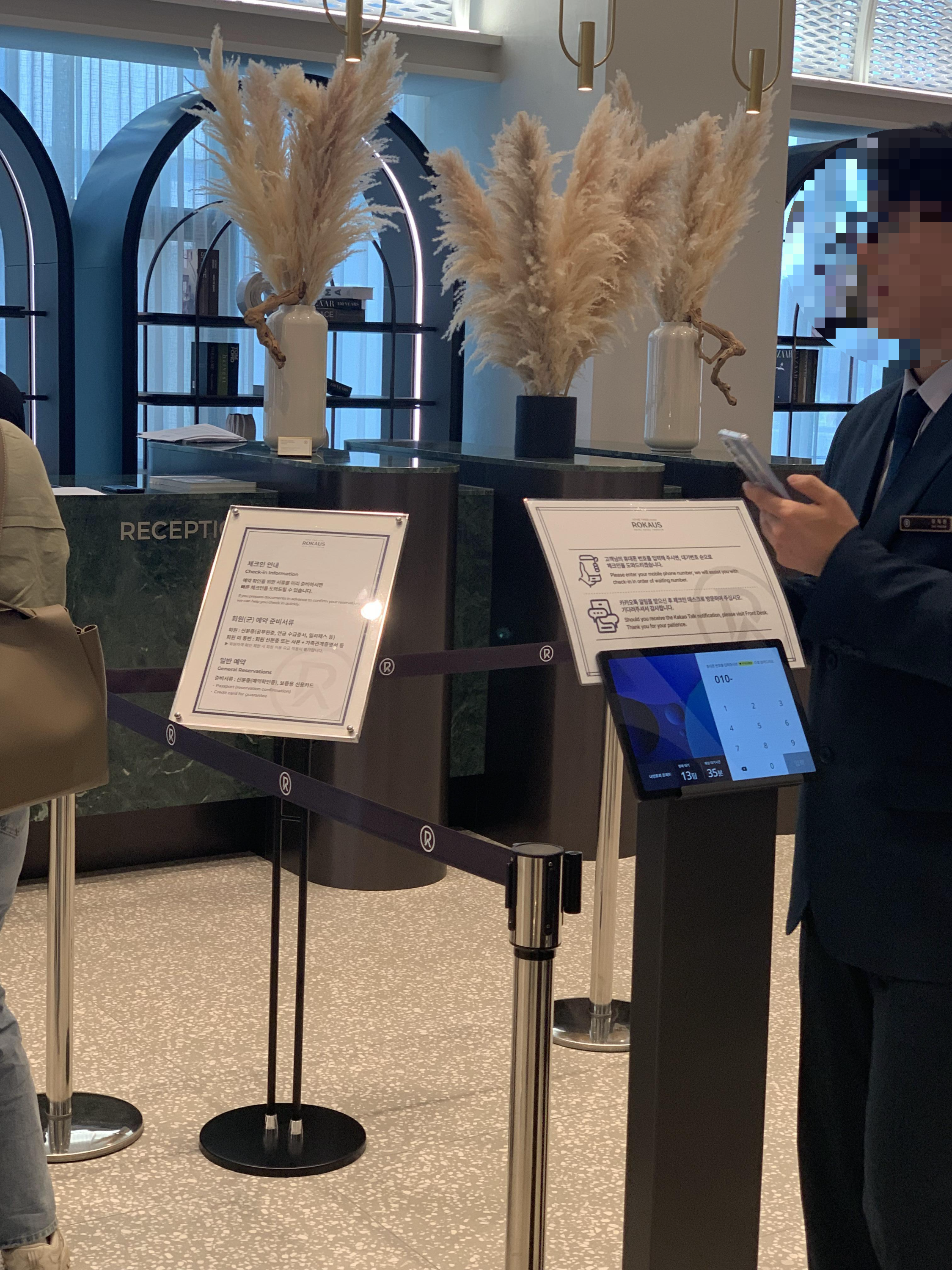 태블릿에 번호를 등록하고 체크인 웨이팅을 걸어야 했다.