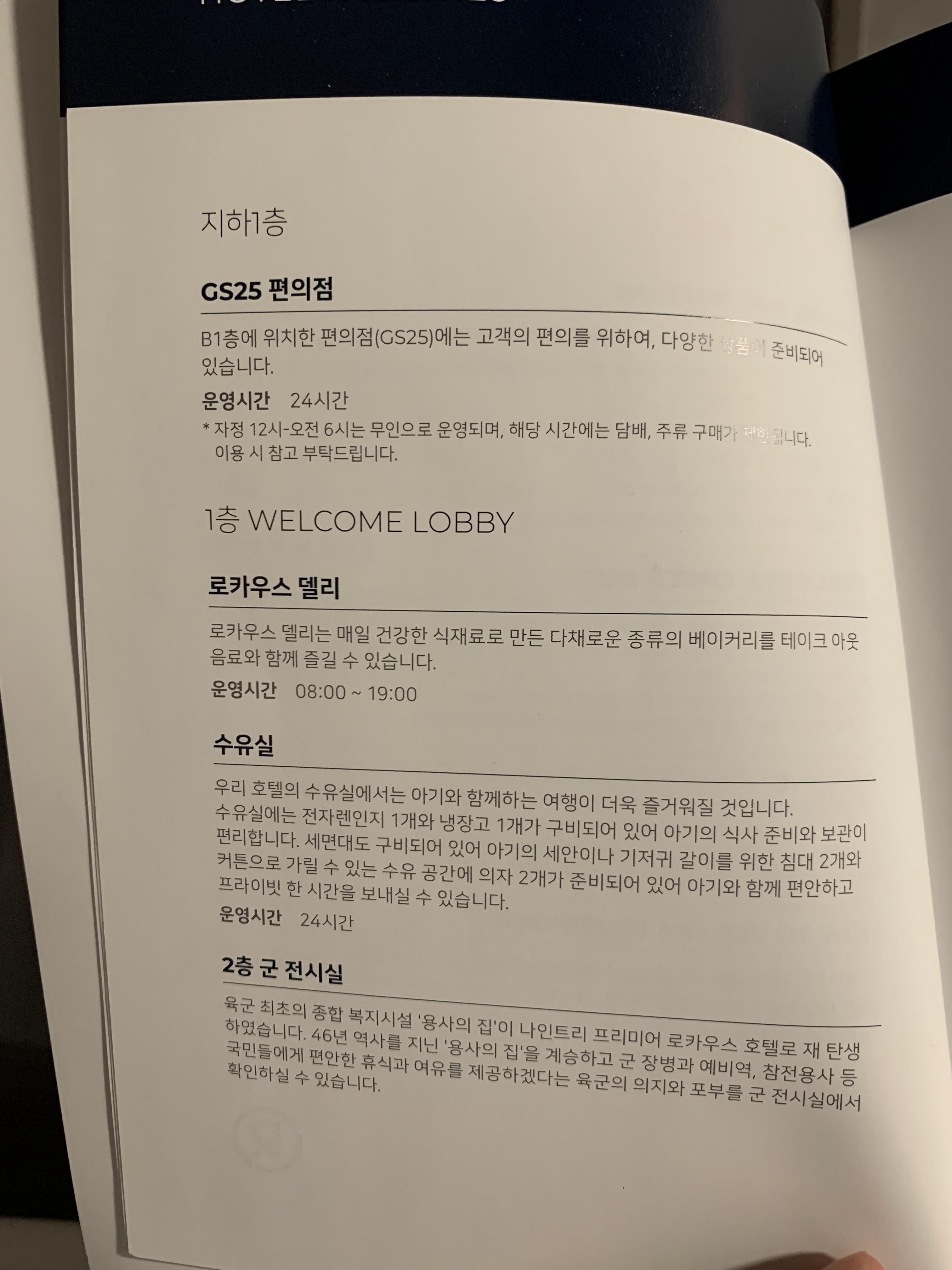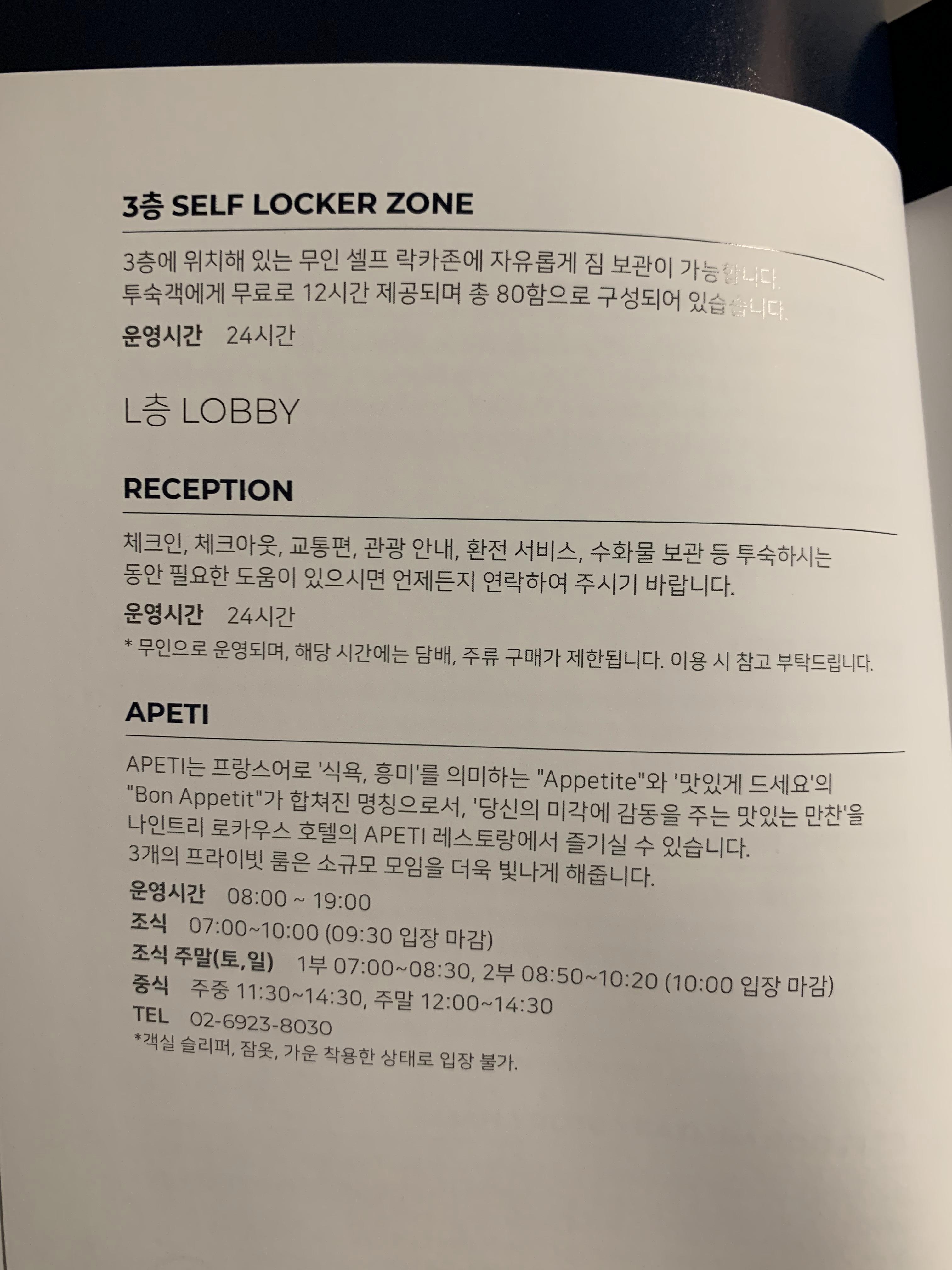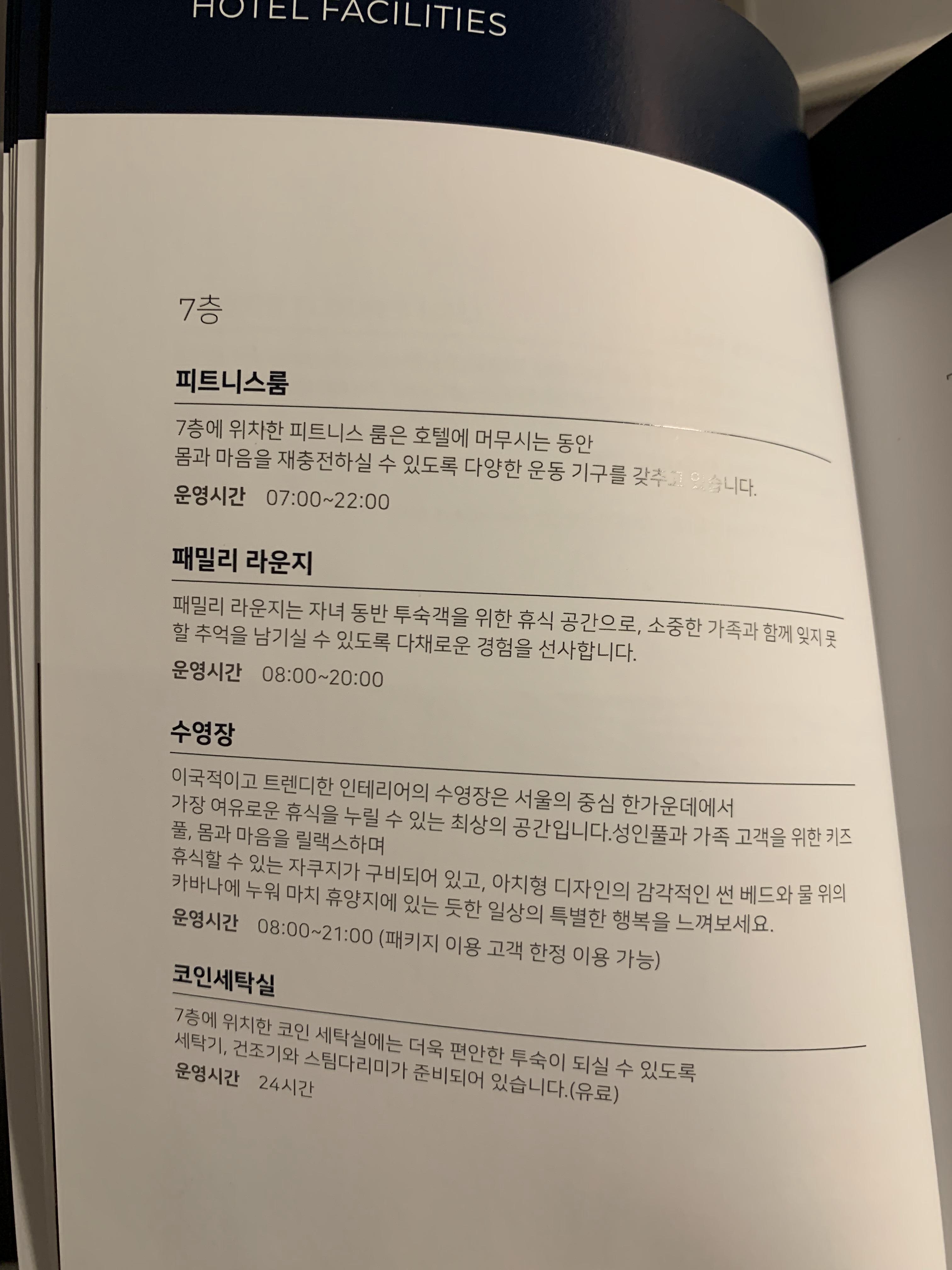 객실에 비치된 호텔의 인포메이션이다.
