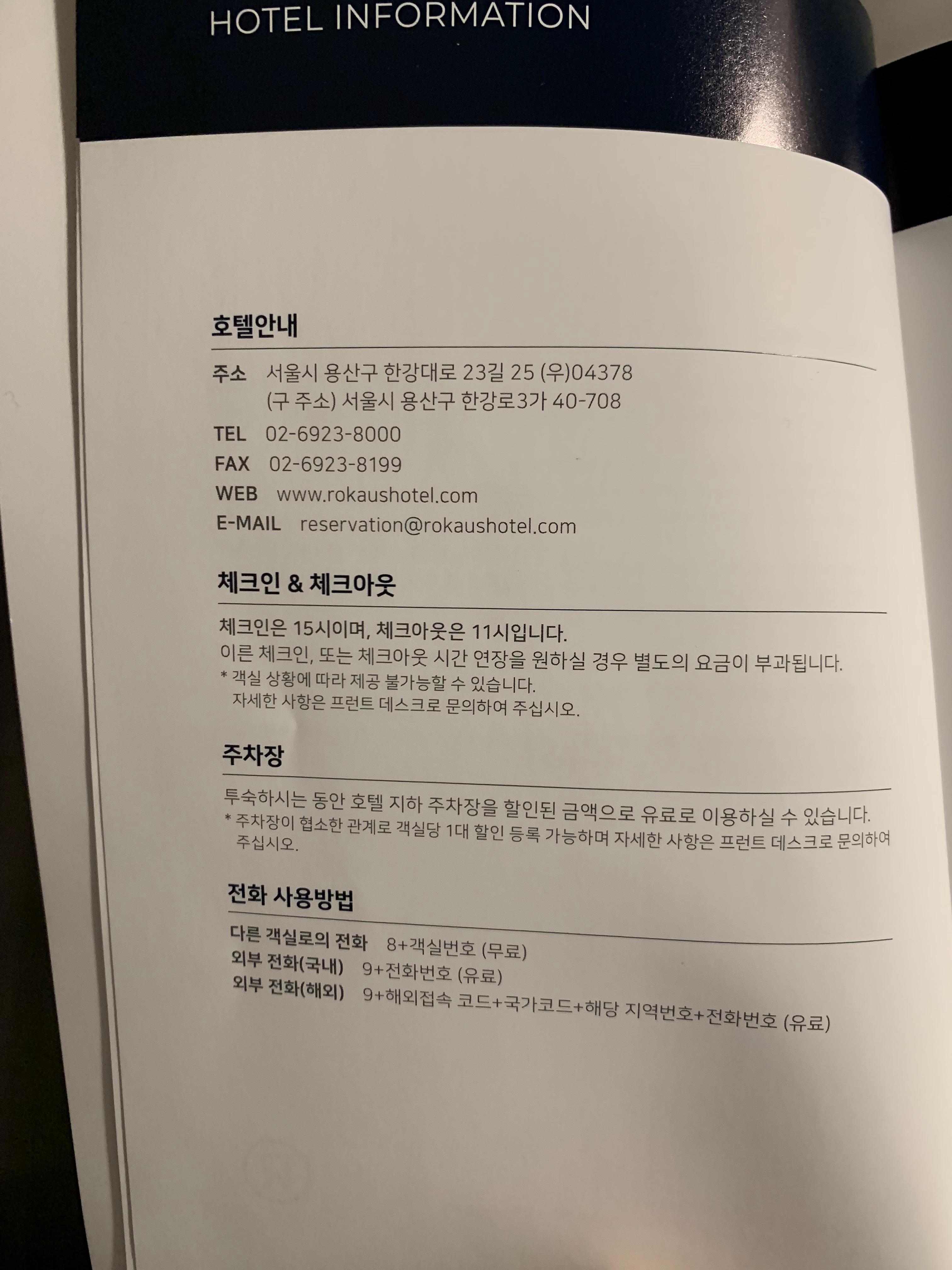 주소 : 용산구 한강대로 23길 25 나인트리 프리미어 로카우스 호텔