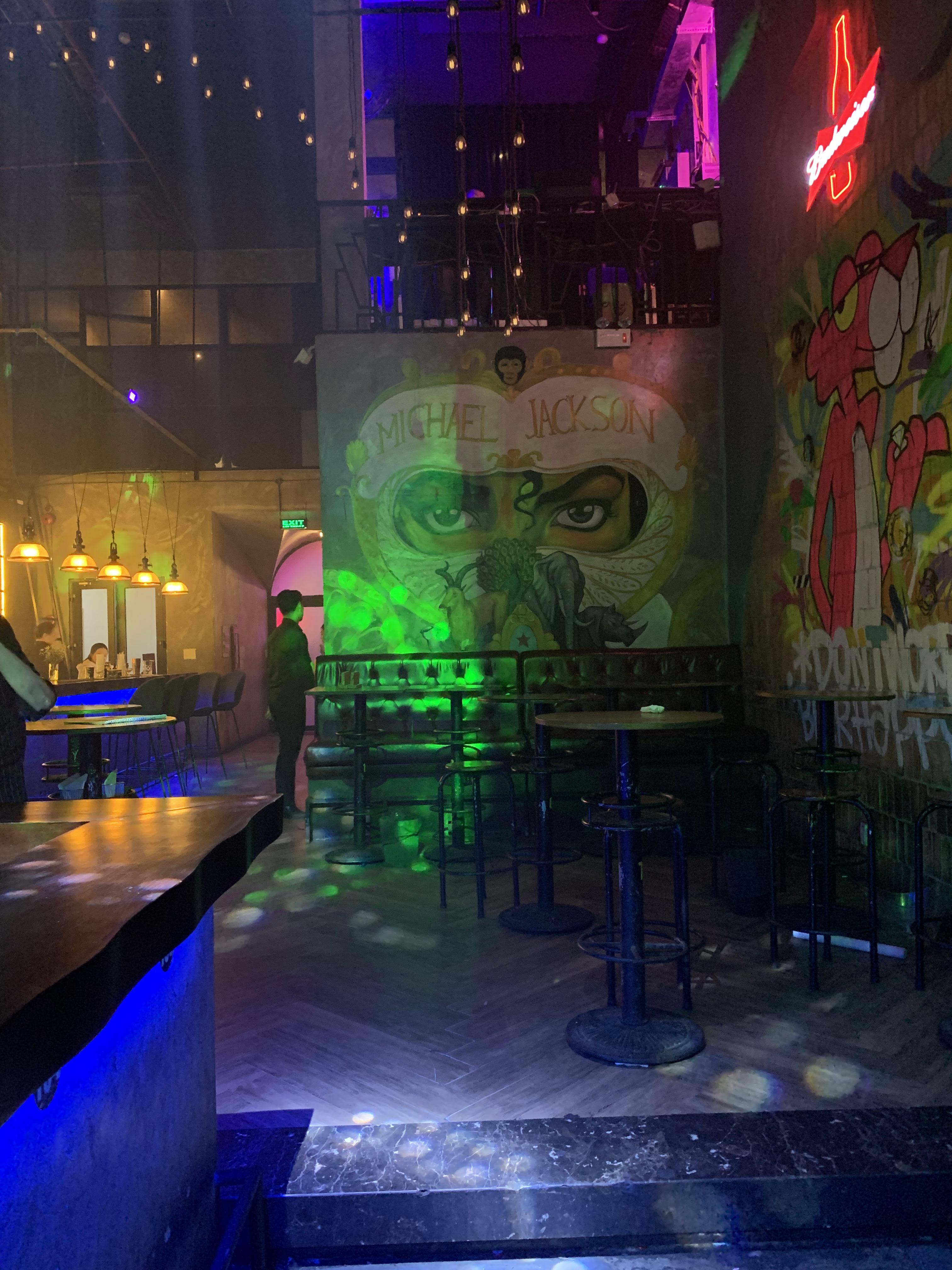 천장이 높아 매우 넓은 공간처럼 느껴진다. 거대한 미러볼과 화려한 조명들이 공간을 더욱 멋지게 만들어준다.