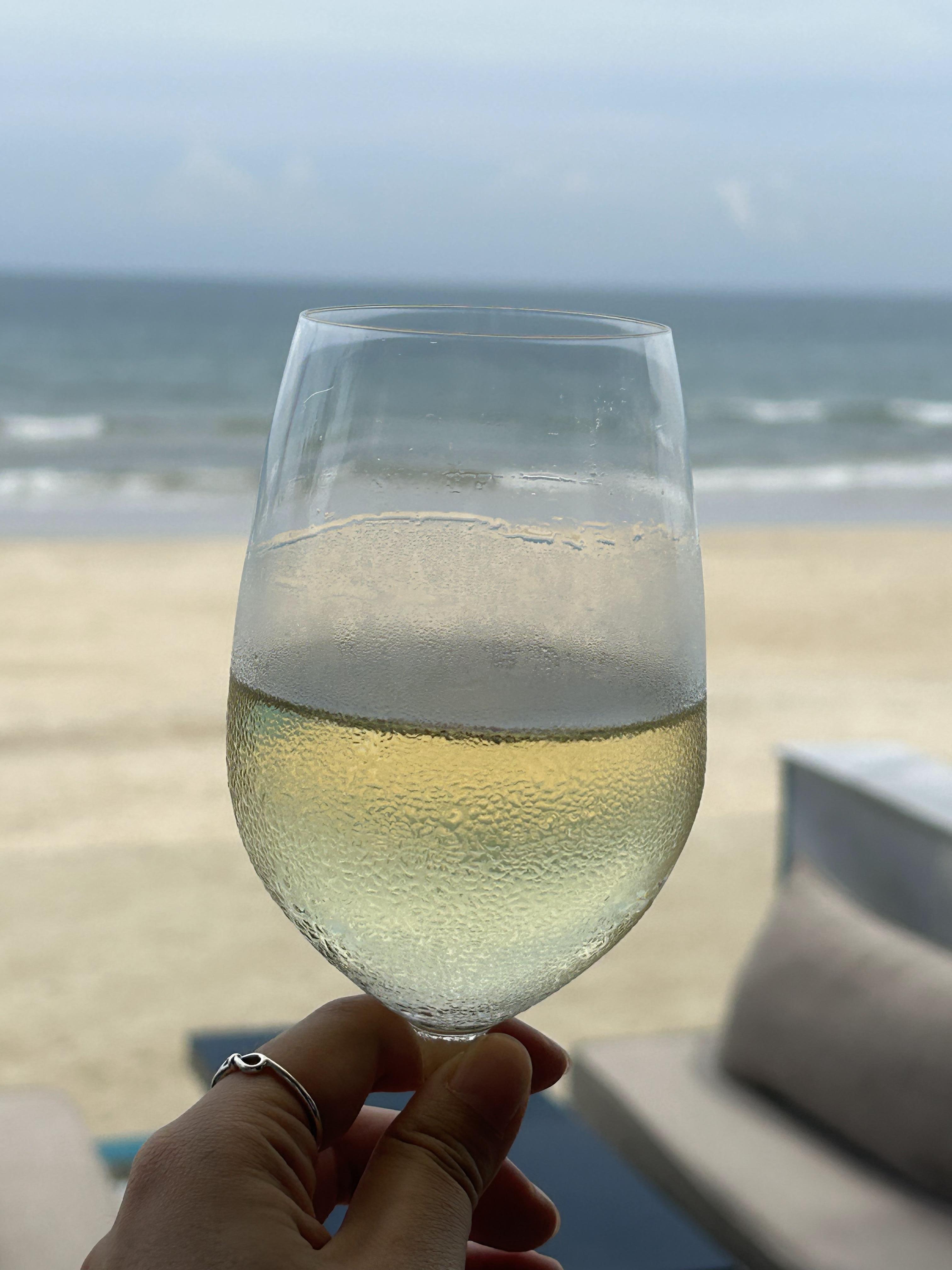 주문한 칵테일과 화이트 와인 한 잔.