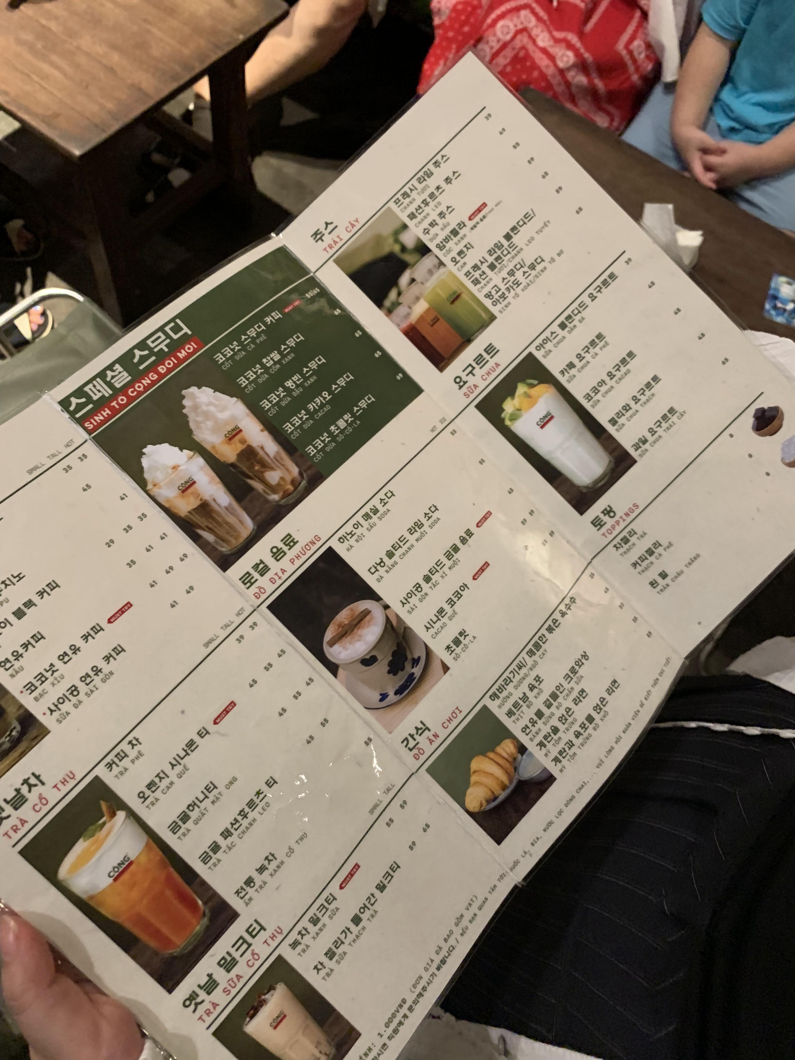 콩 카페의 시그니처 메뉴인 코코넛 스무디 커피를 주문했다. 이외에도 다양한 메뉴들이 있다.