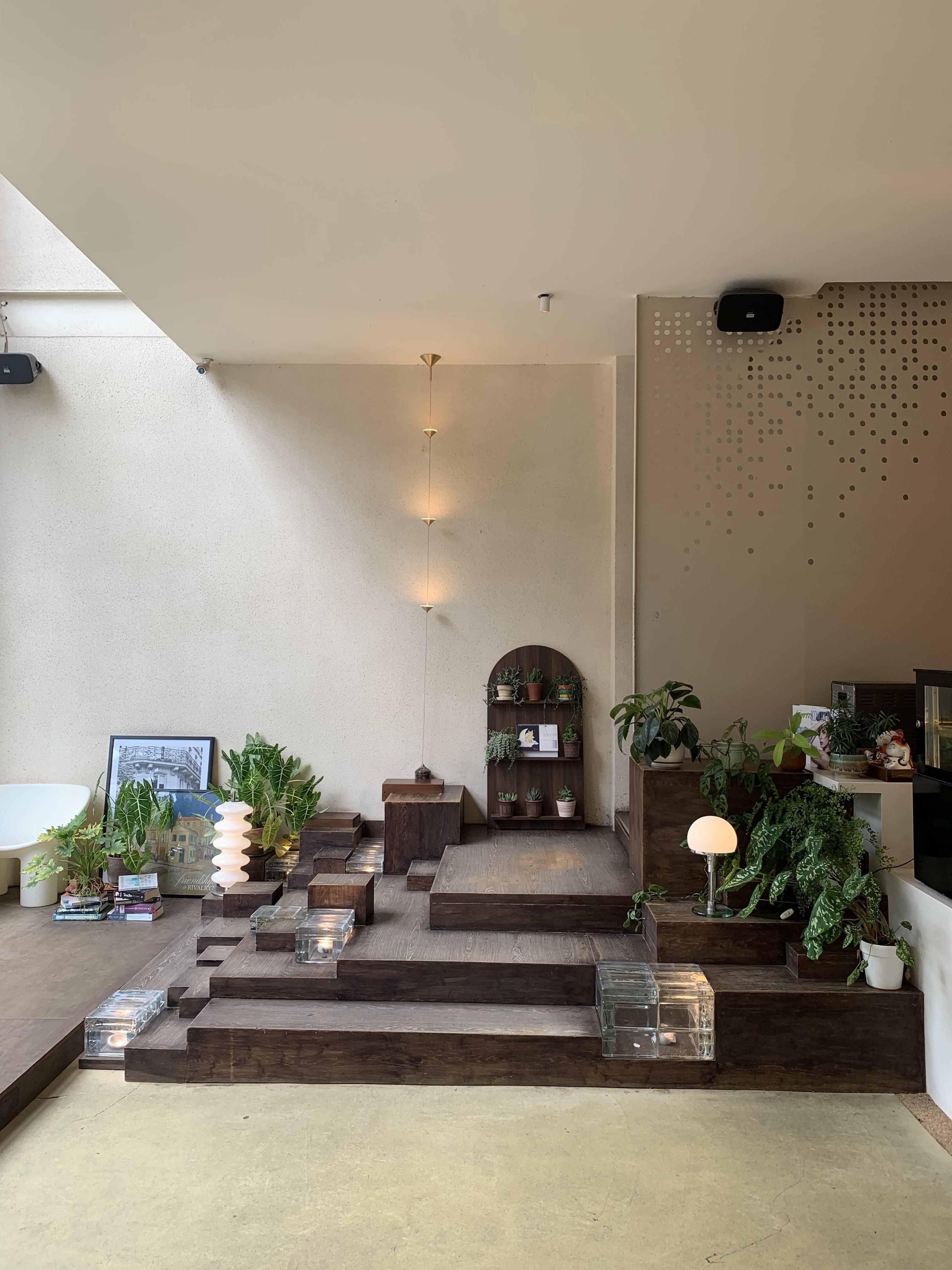 식물들과 우드톤의 계단이 너무나도 조화로웠다. 센스있는 소품도 공간을 가득 차게 만들어준다.