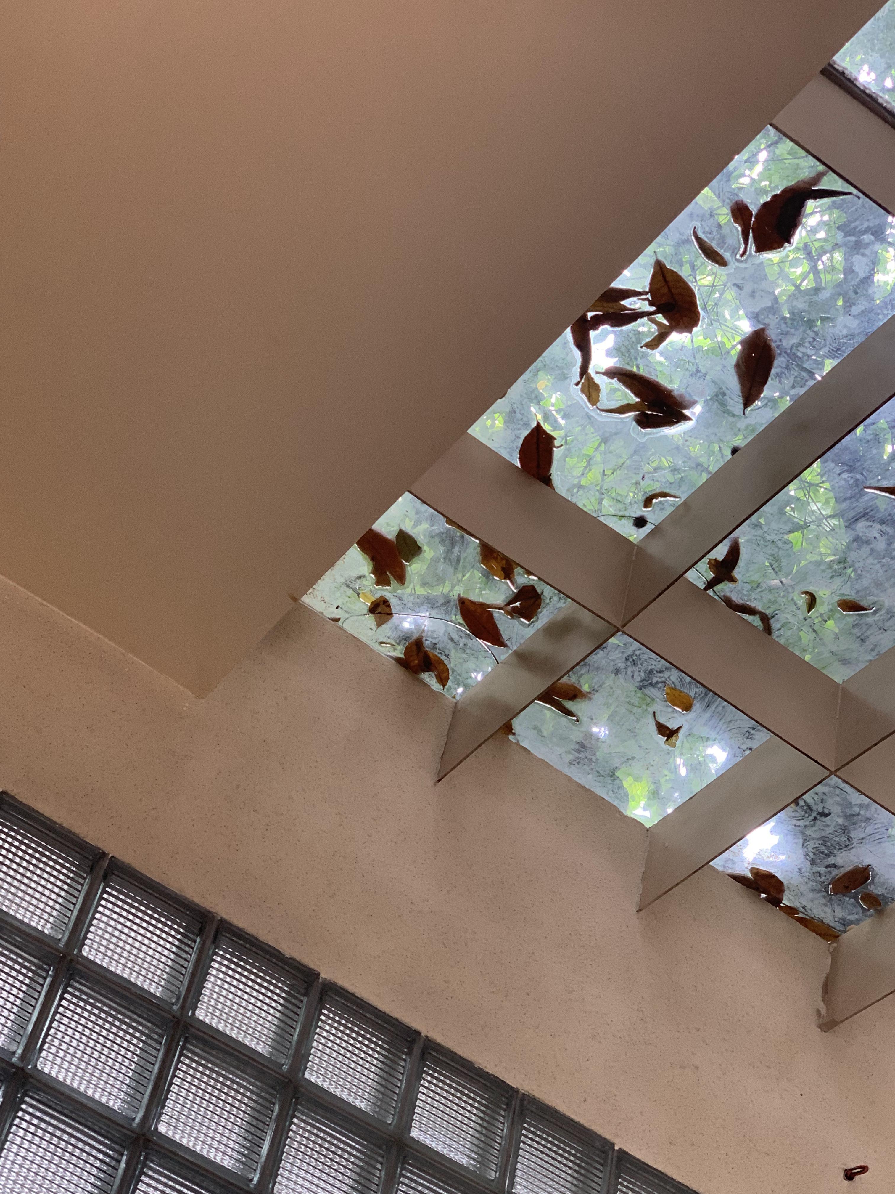 천장의 유리와 그리드. 아래 유리블럭과 비슷한 형태를 가져간다.
