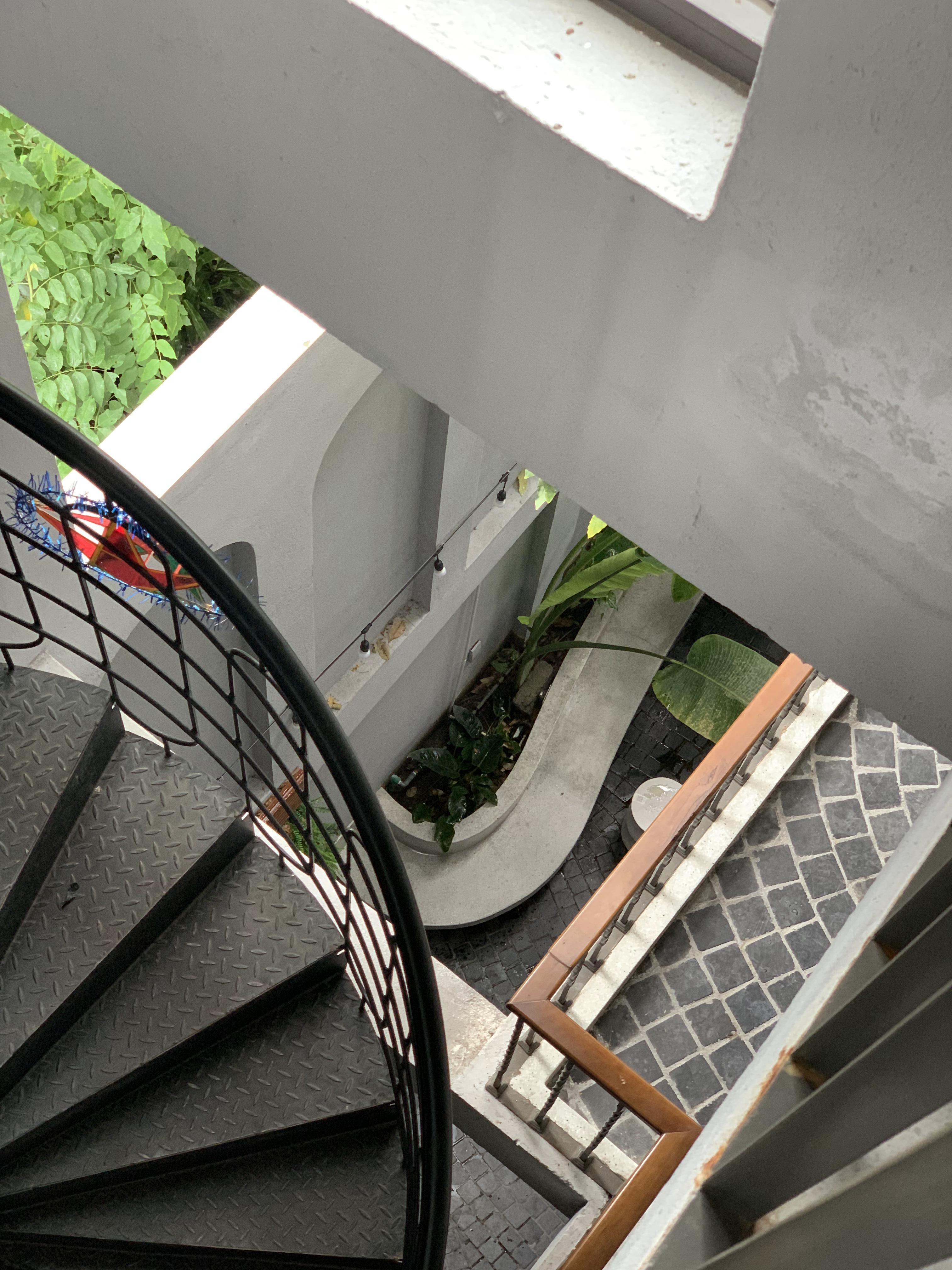 루프탑까지 이어지는 원형계단과 각 층의 모습.