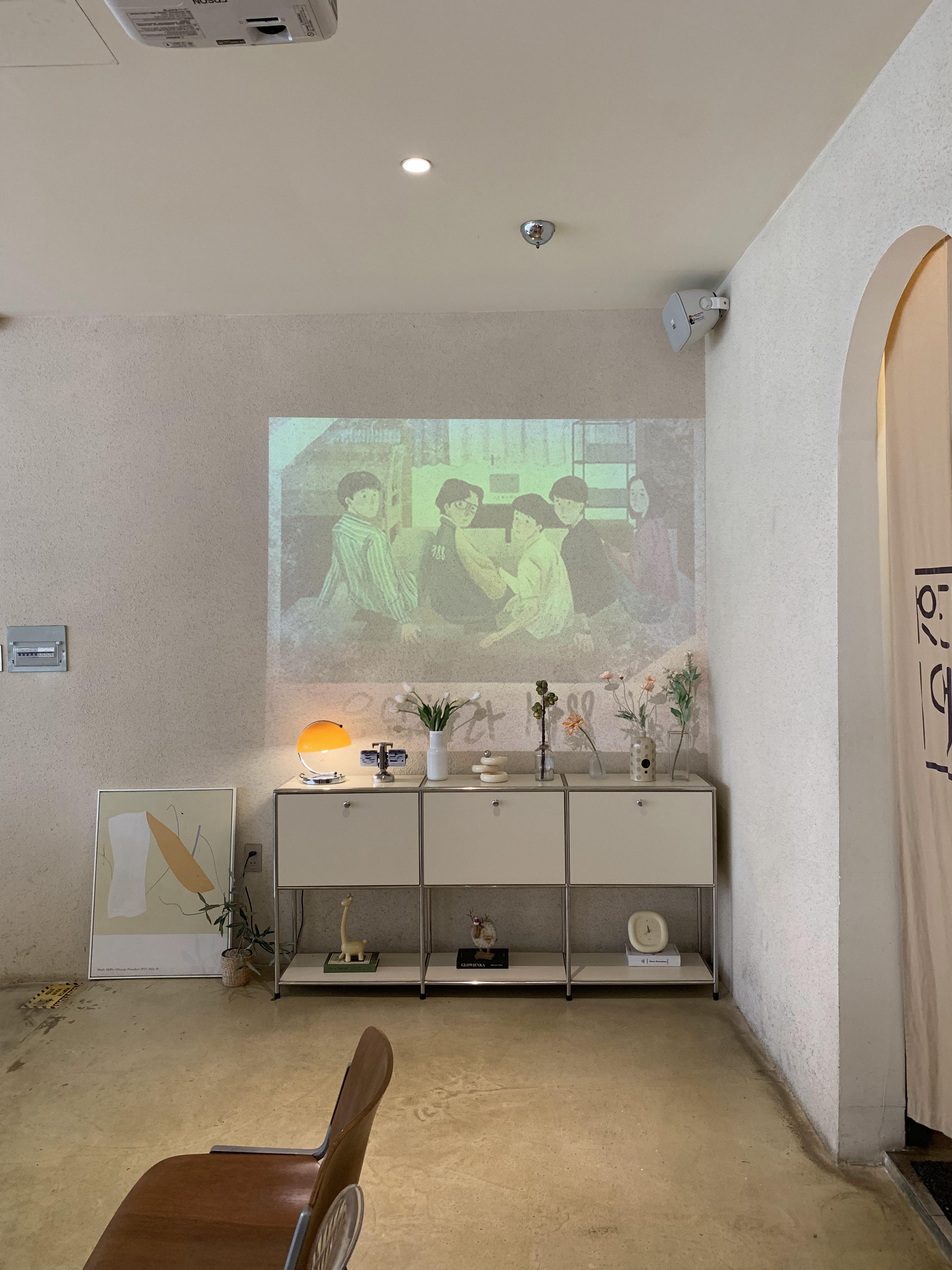 응답하라 1998의 요소가 보이는 부분이었다. 벽에 빔프로젝터를 쏴 공간을 활용하였다.