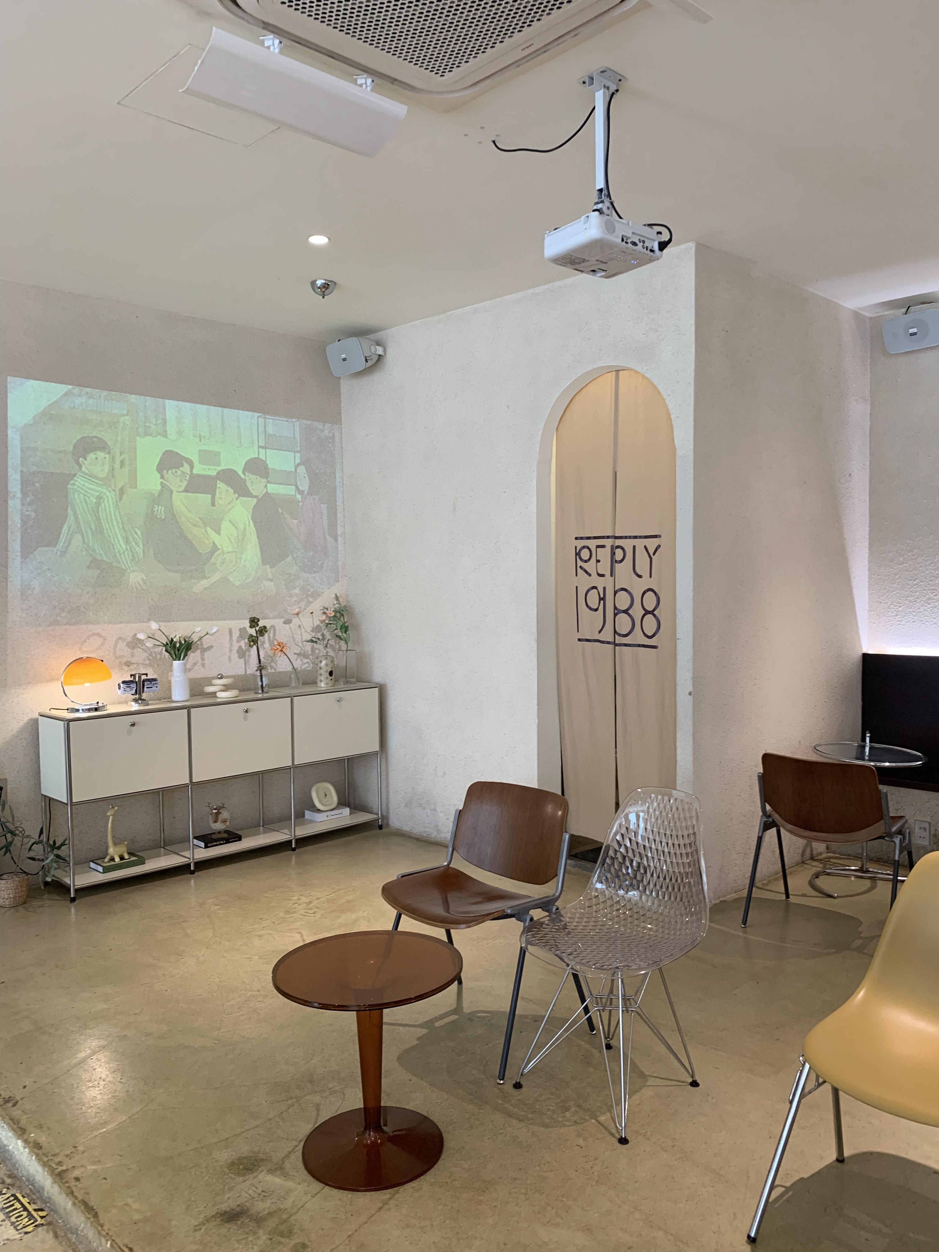 REPLY 1988 카페는 1,2층으로 나누어져있는데 1층에 자리를 잡고 2층을 구경하였다. 2층은 별다른 구획이 없는 큰 공간에 테이블이 배치되어 있었다. 테이블은 다소 많아 보였다.