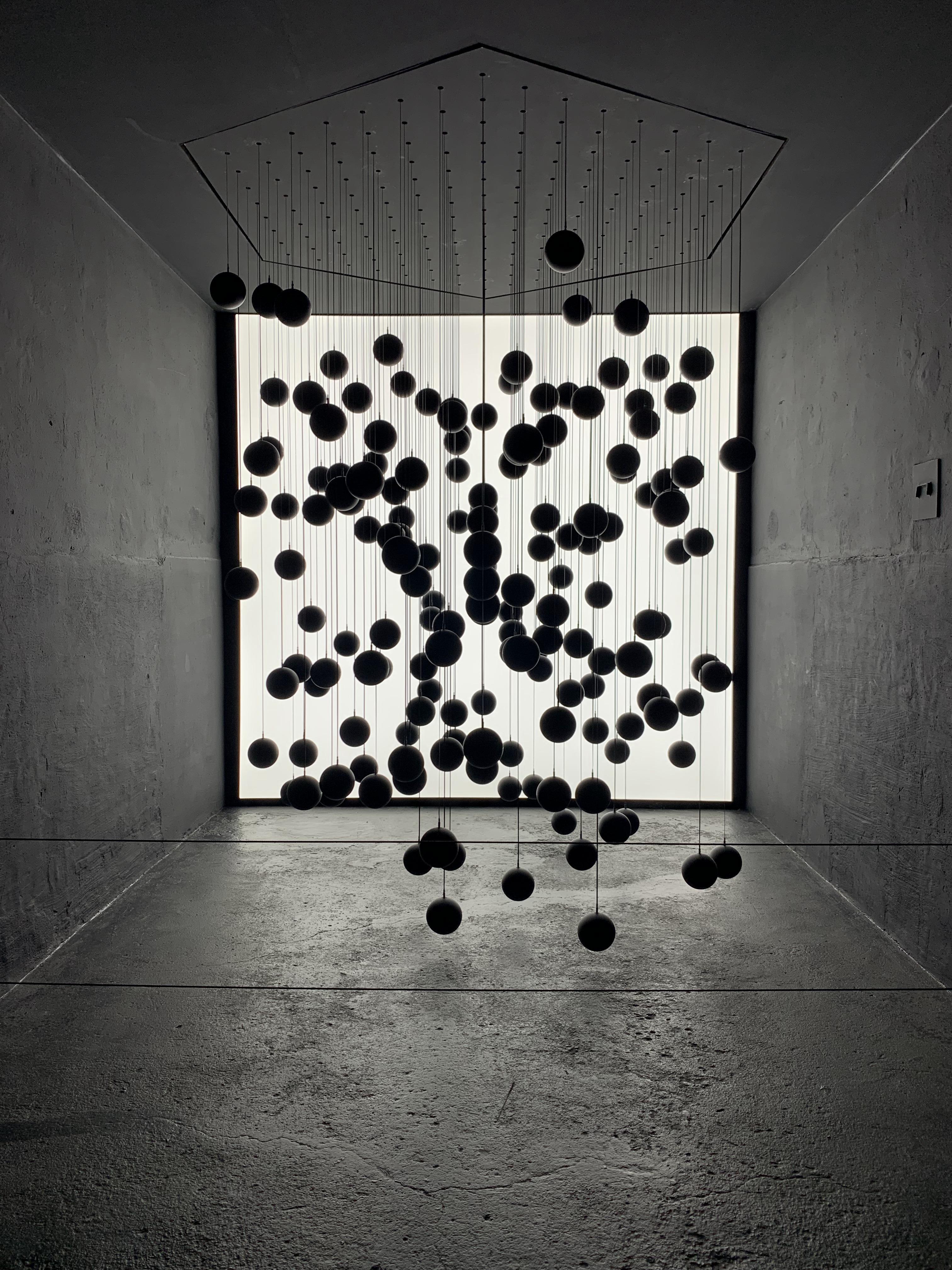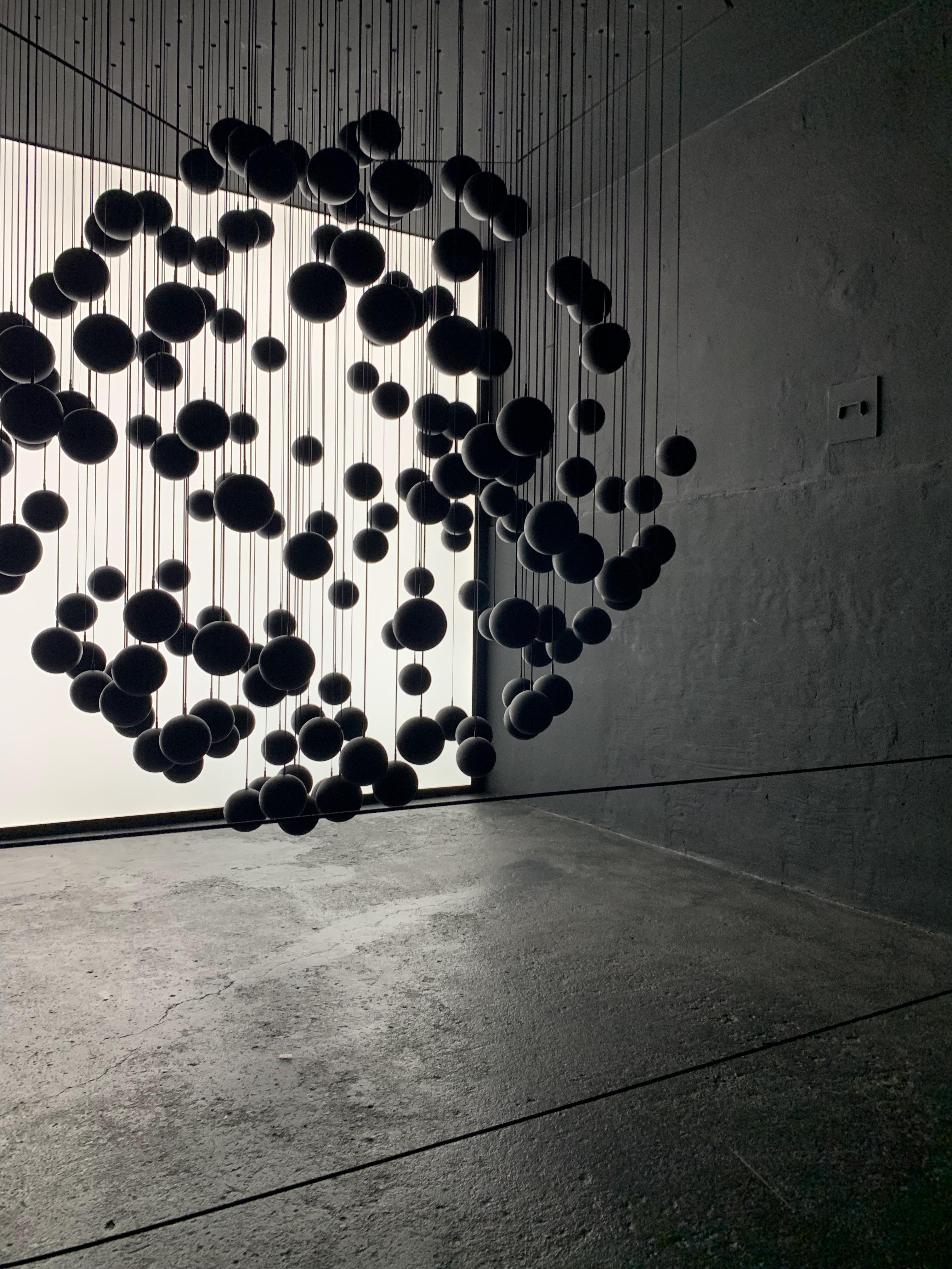169개의 검은구가 천장에 매달려 일사불란하게 움직인다.