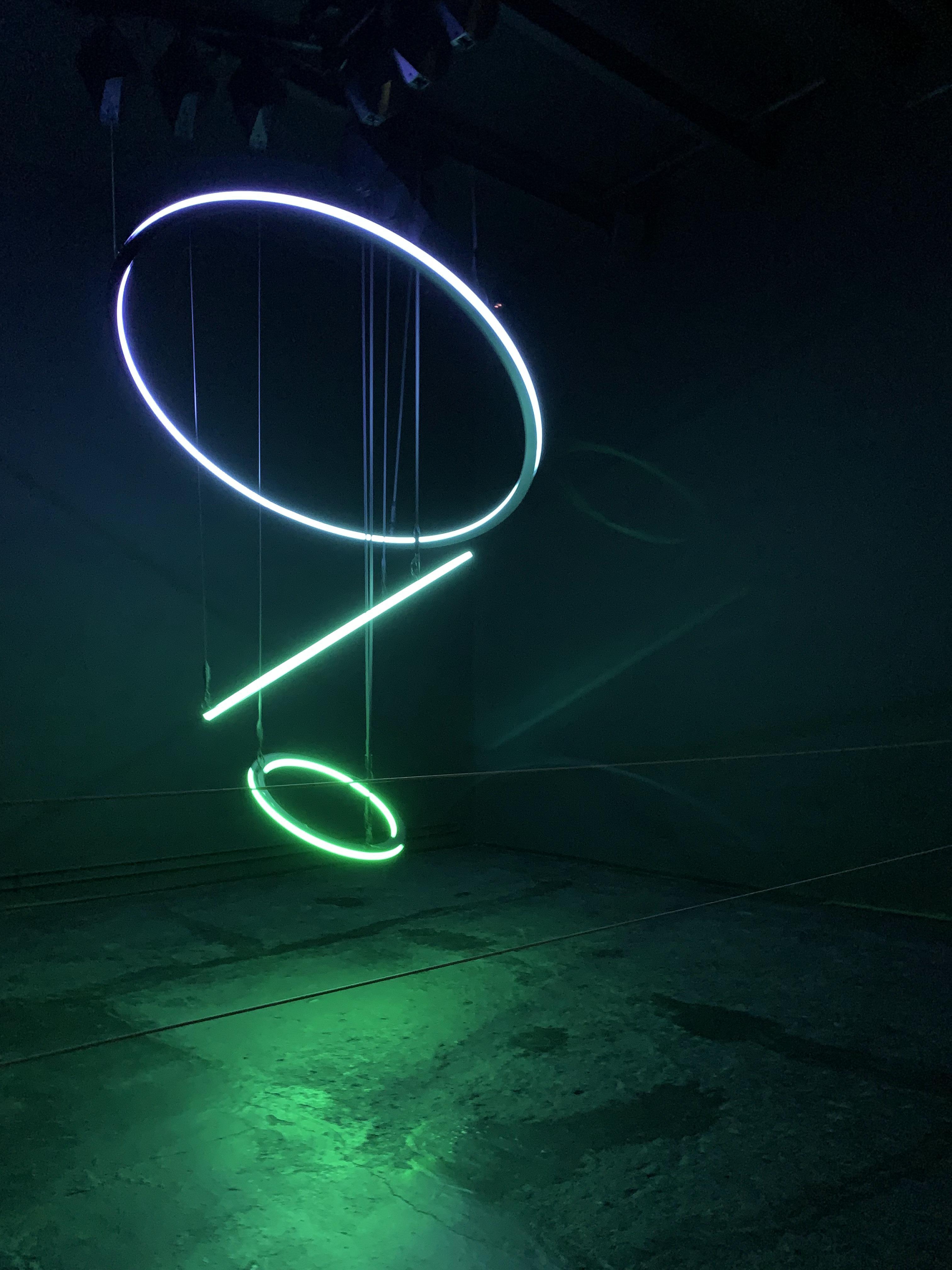 서큘러는 3개의 빛나는 링이 움직이며 황홀한 빛을 내뿜는 전시였다.