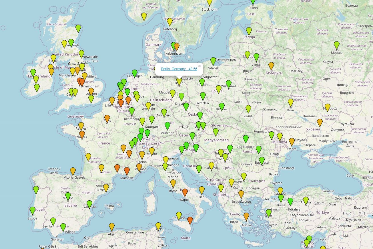 위 사진은 전 세계의 안전한 도시들의 지수를 나타낸 것이다. 초록색이 짙을 수록 안전하다는 뜻이며 황색에 가까울 수록 조심해야 한다는 곳으로 이해하면 되겠다. 베를린의 치안은 타 유럽 도시들에 비하면 안전한 편이나 같은 독일내에서는 주의할 필요가 있는 정도로 분류된다.
