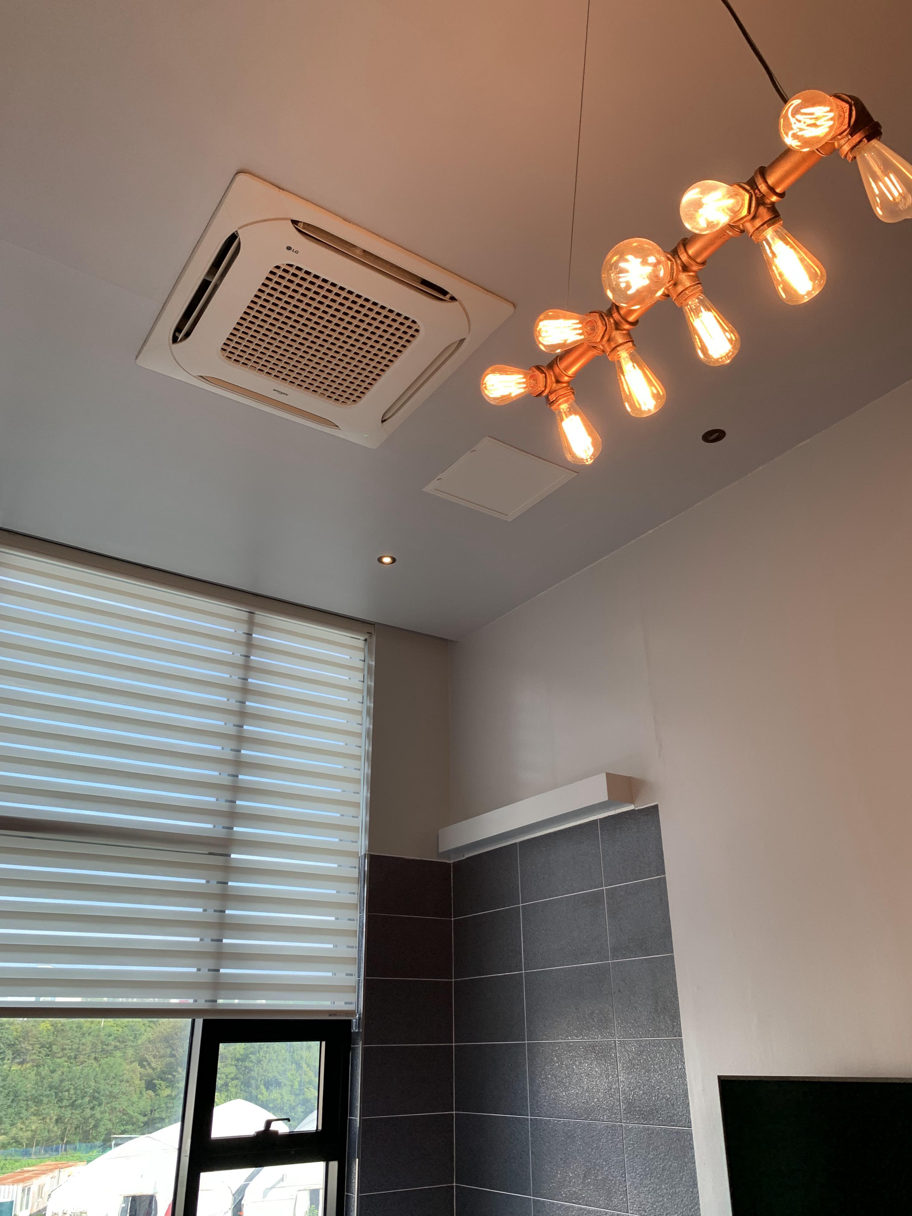 따뜻한 백열전구와 천장. 복층의 장점은 천장이 높아 답답한 느낌이 없다는 것. 단점은 오르내리기 힘들다는 것...