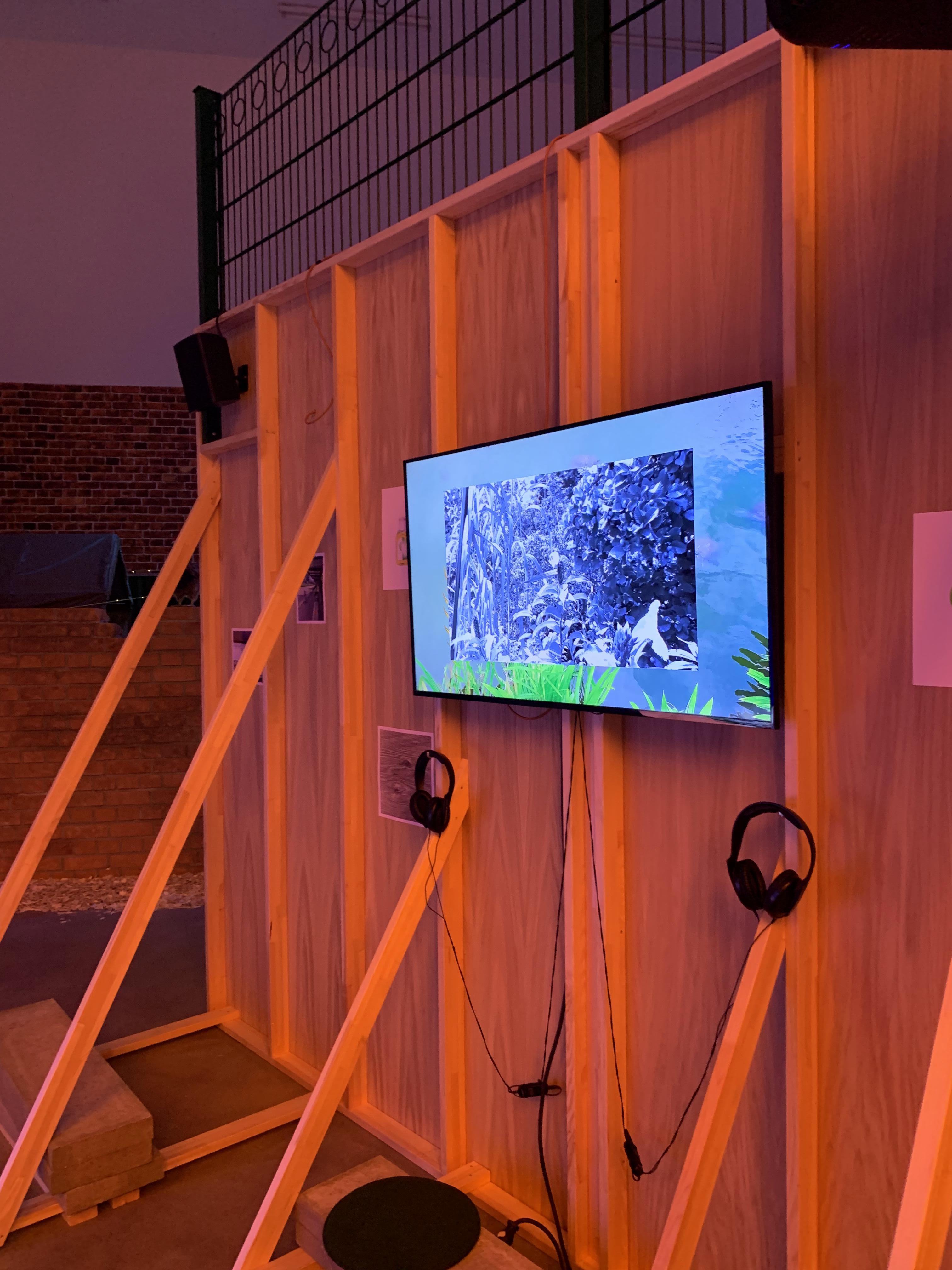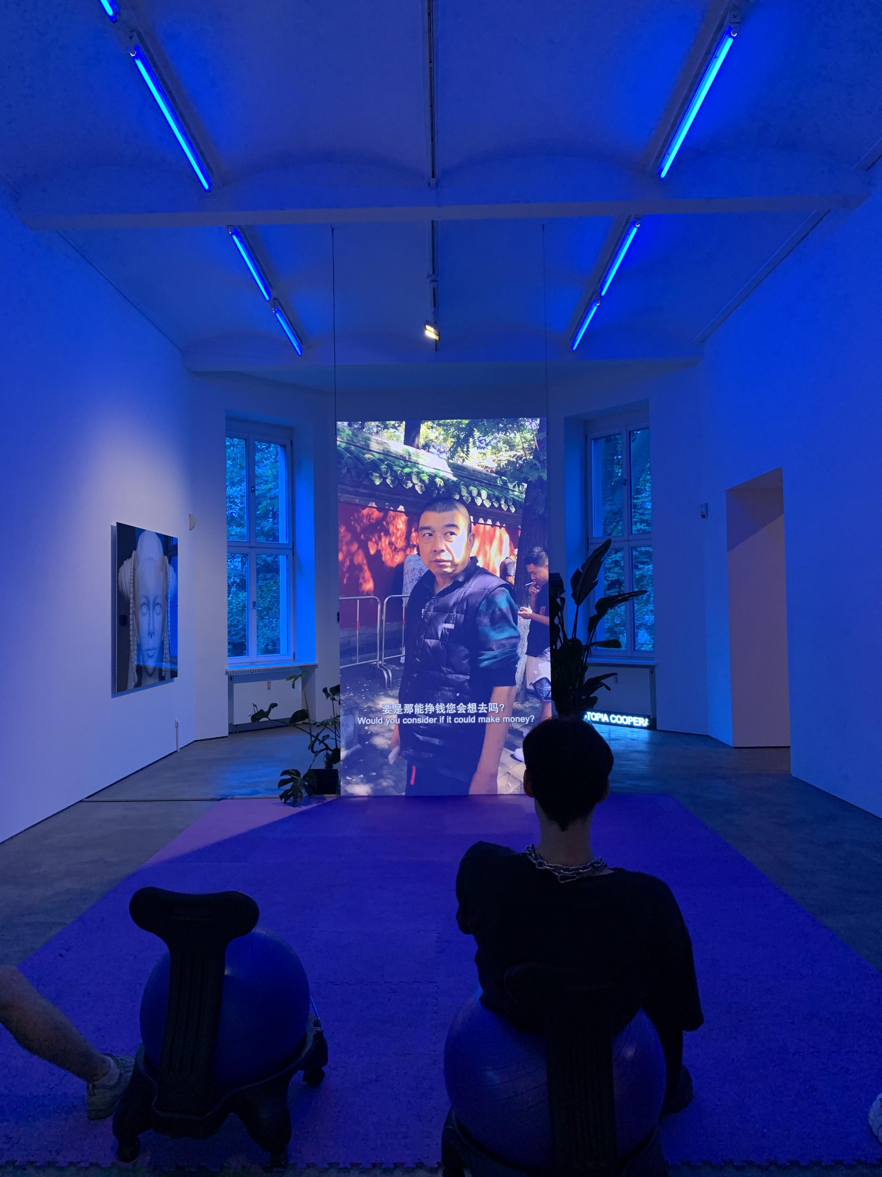 2층은 전체적으로 파란 네온 빛으로 가득 차있었고 다큐멘터리 형식으로 풀어낸 영상물들이 있었다.