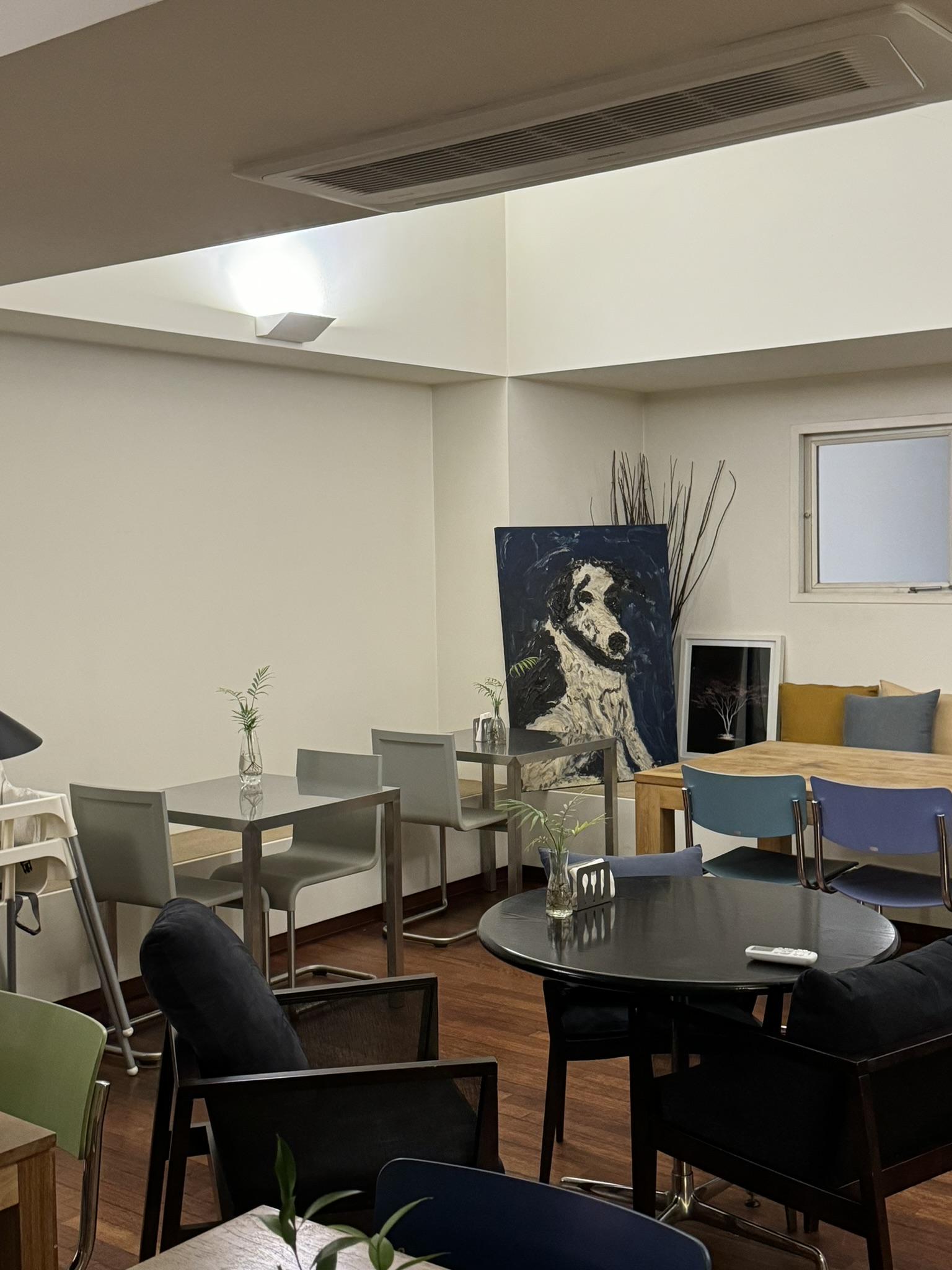홈파티하기에 좋아보이는 형태였다. 동일하지 않고 다른 의자와 테이블도 공간을 매력 있게 만들어줬다.