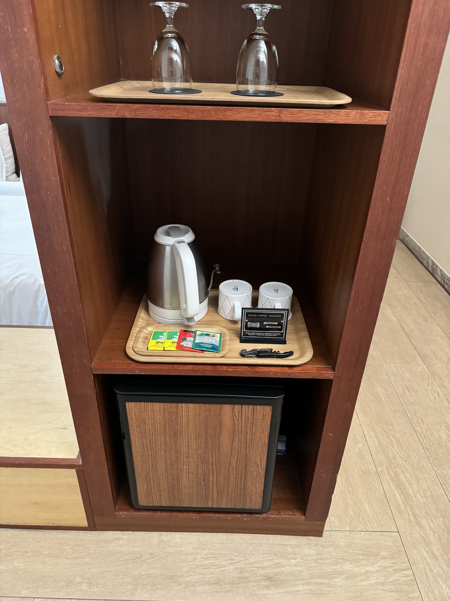 기본 어메니티와 냉장고가 다소 멀리 있어 조금 불편하다 느낄 수 있다.