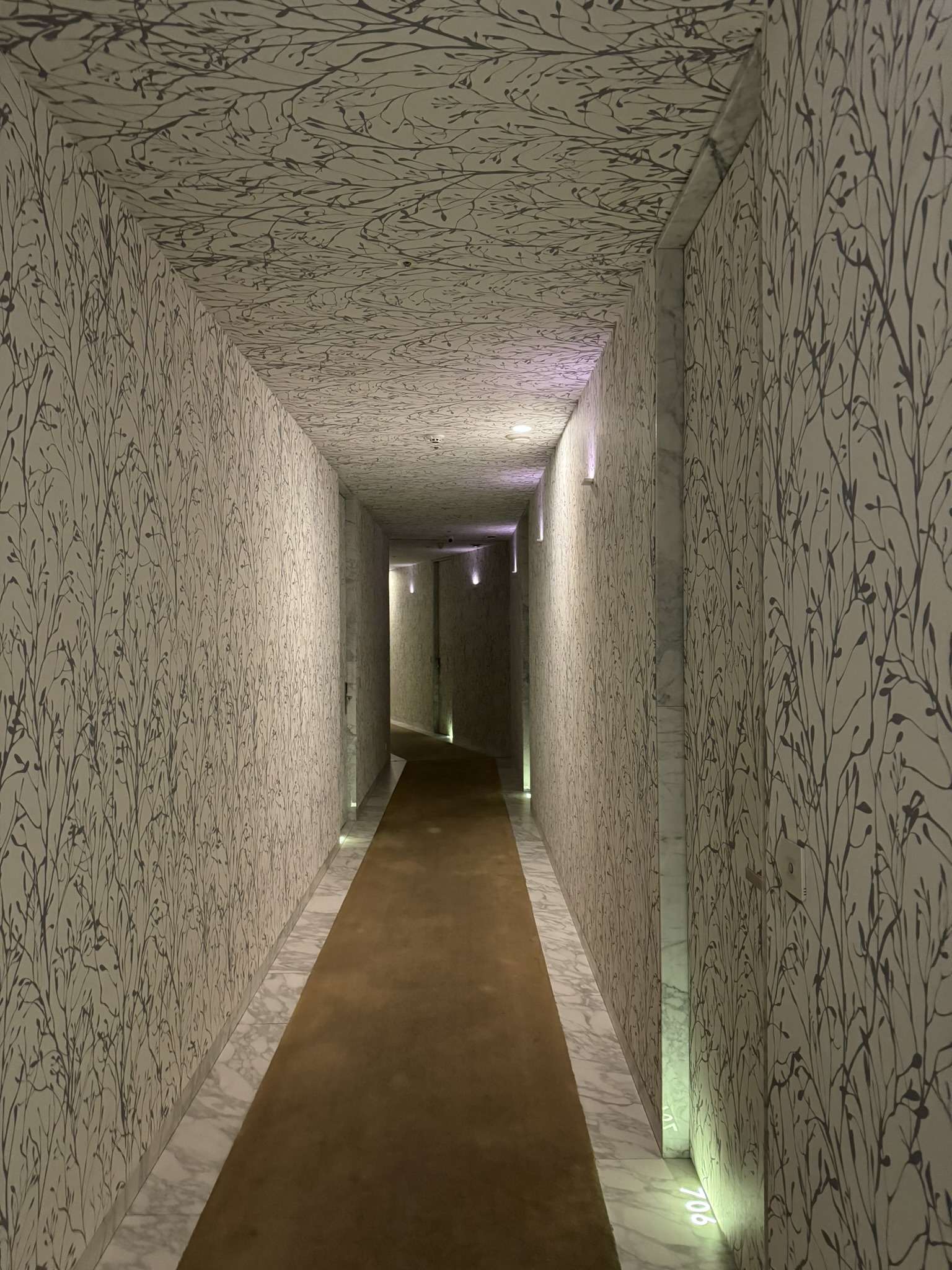 바닥에 라이팅으로 객실 번호를 표시한 것이 예뻤다.