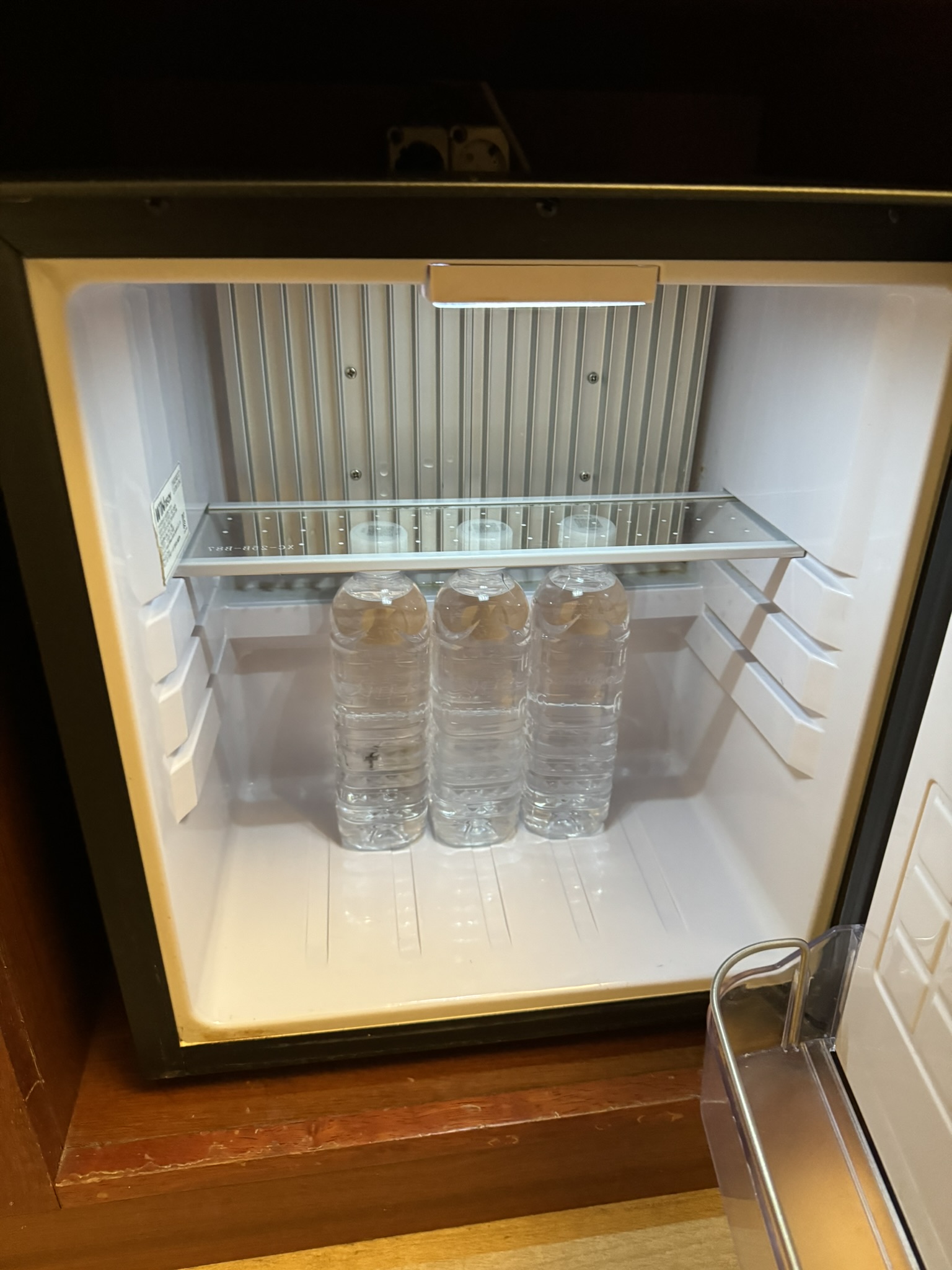 화장실 맞은편에 있는 냉장고와 어메니티들.
