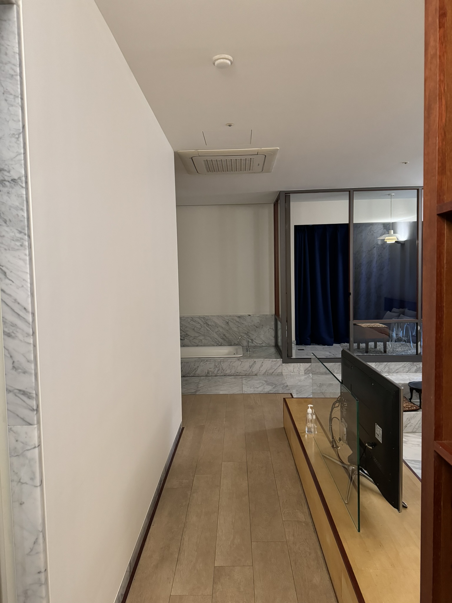 바닥은 카펫이 아닌 마루와 대리석이다.