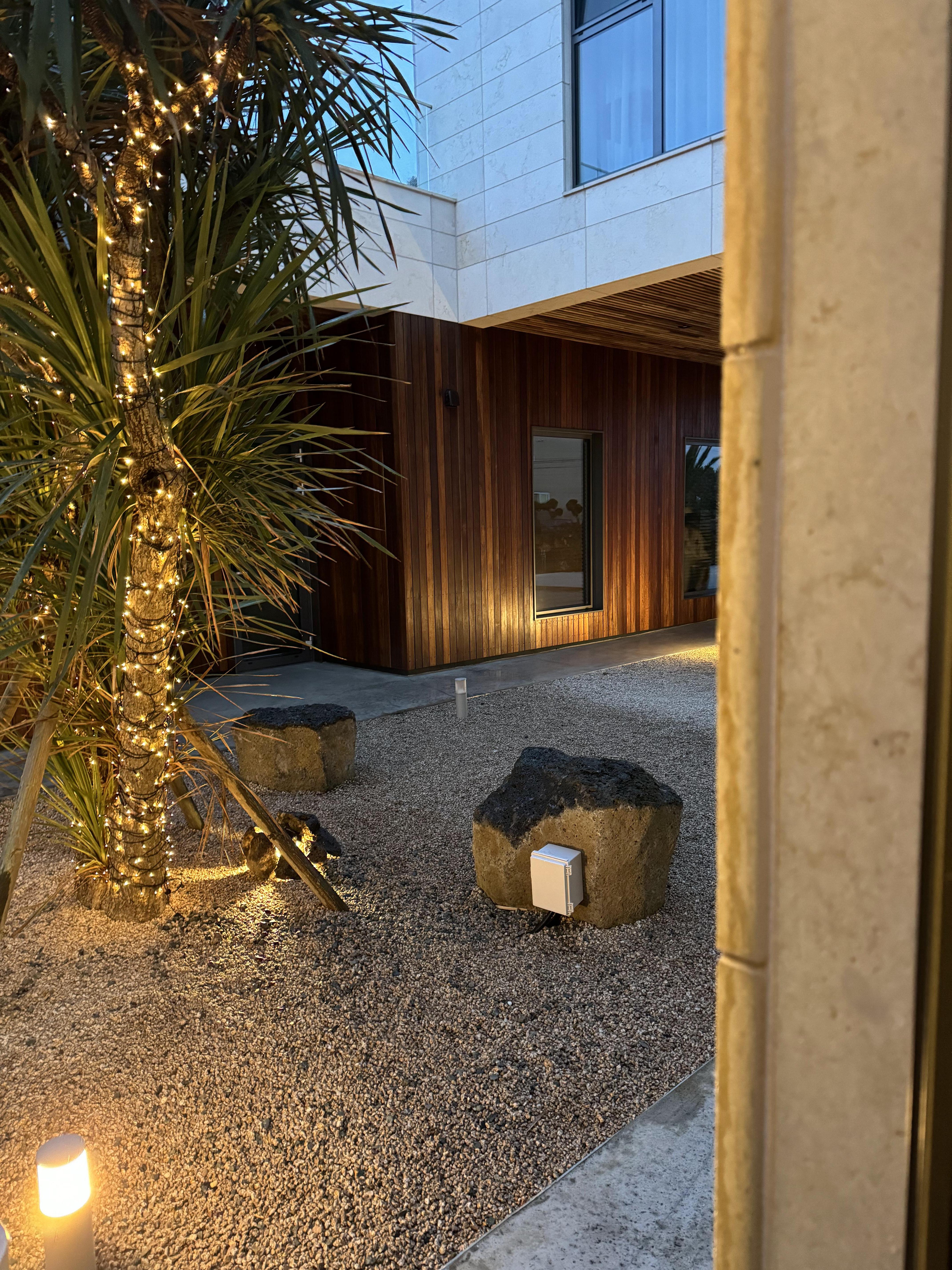 조경석과 외벽 목재로 인해 더욱 따뜻한 분위기를 내는 스테이 든해.