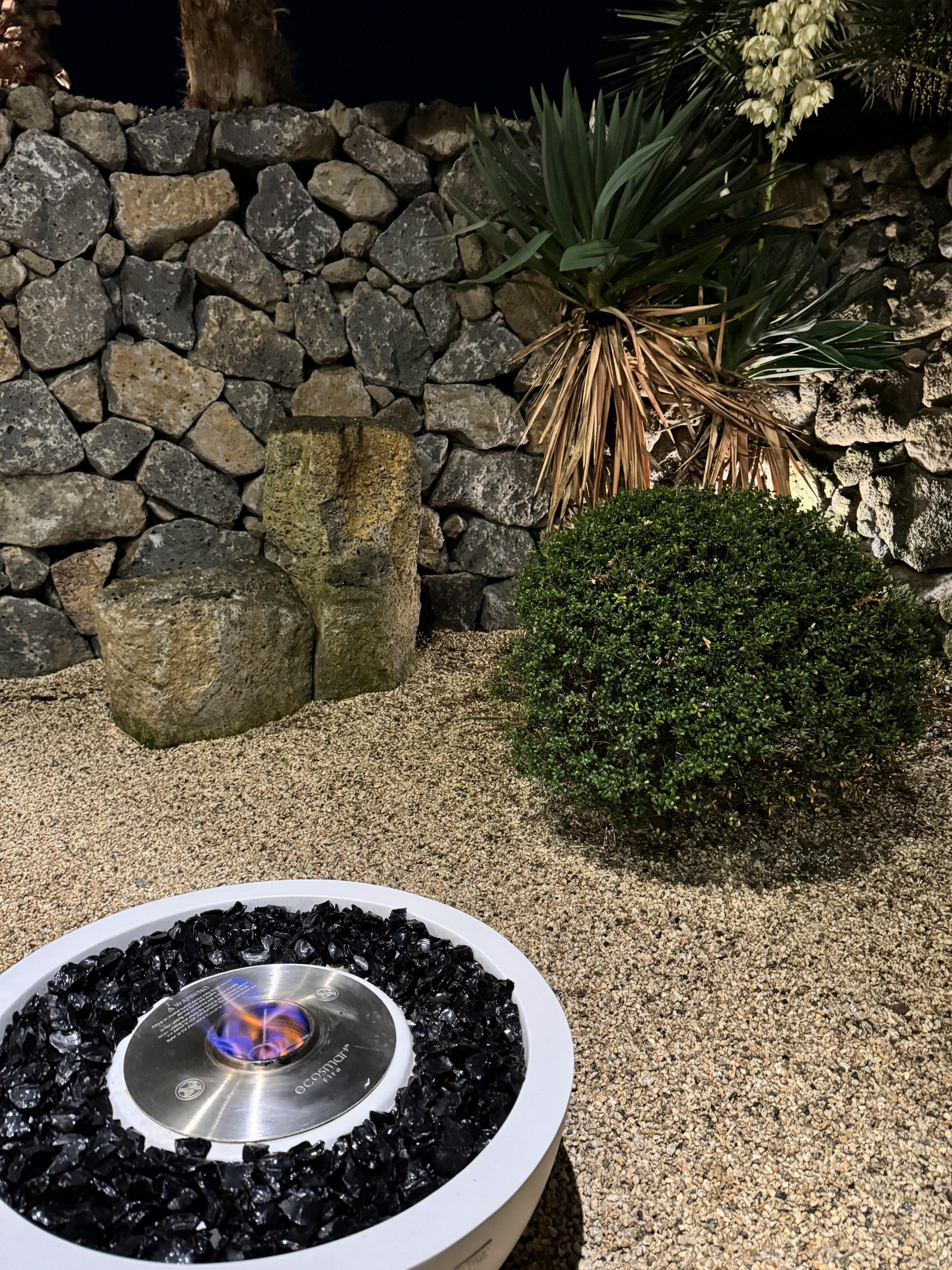 불멍을 할 수 있는 화로와 의자, 사이드 테이블이 있다.