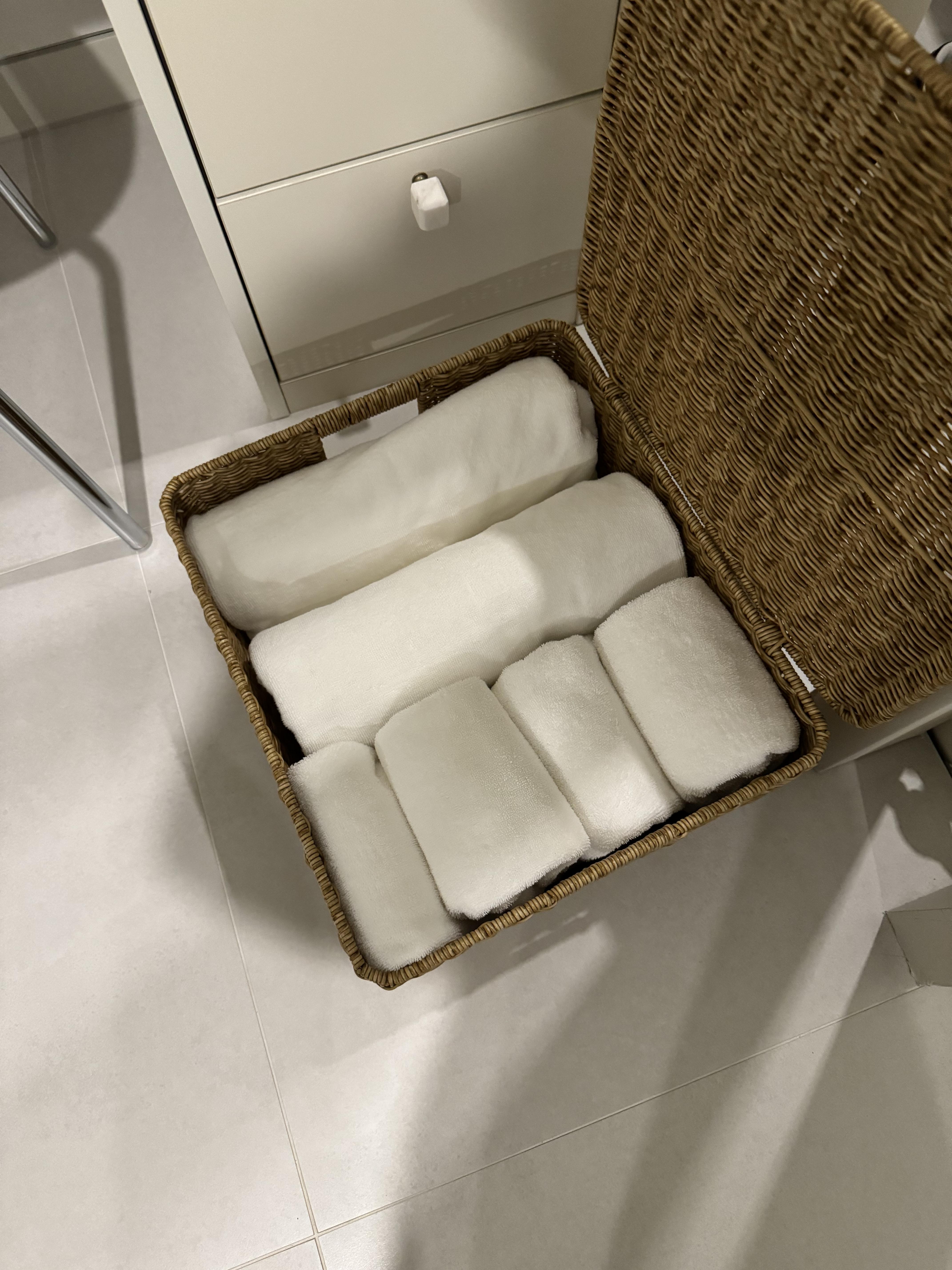 수건은 대형 타올2개와 소형 타월 4개가 준비되어 있다.