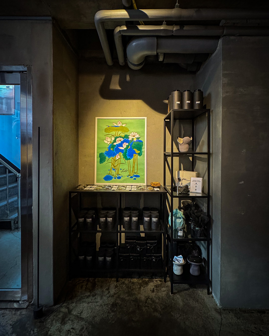 오므오트는 이와는 반대인 무채색의 콘크리트로 둘러싸인 차가워 보이는 공간이다.