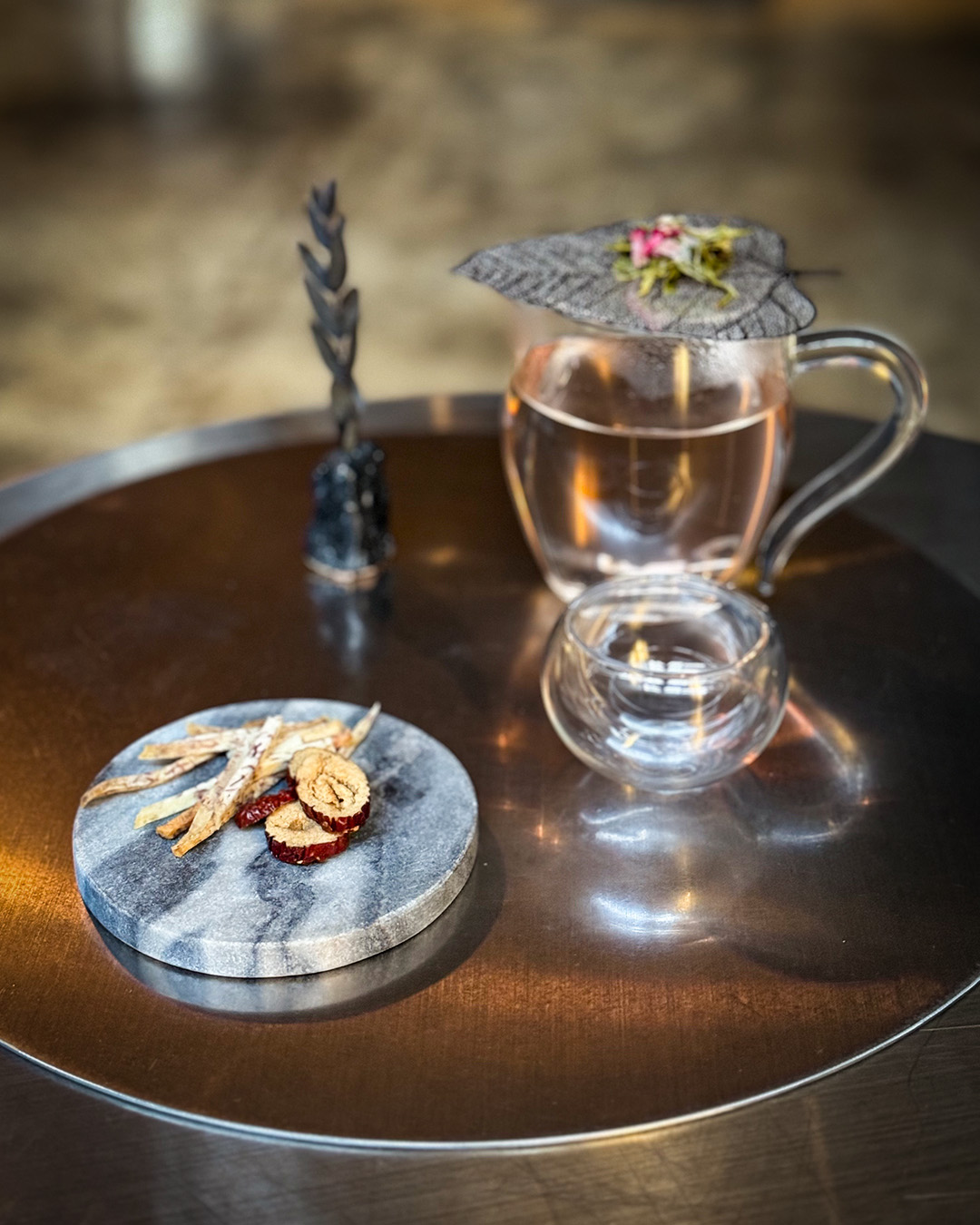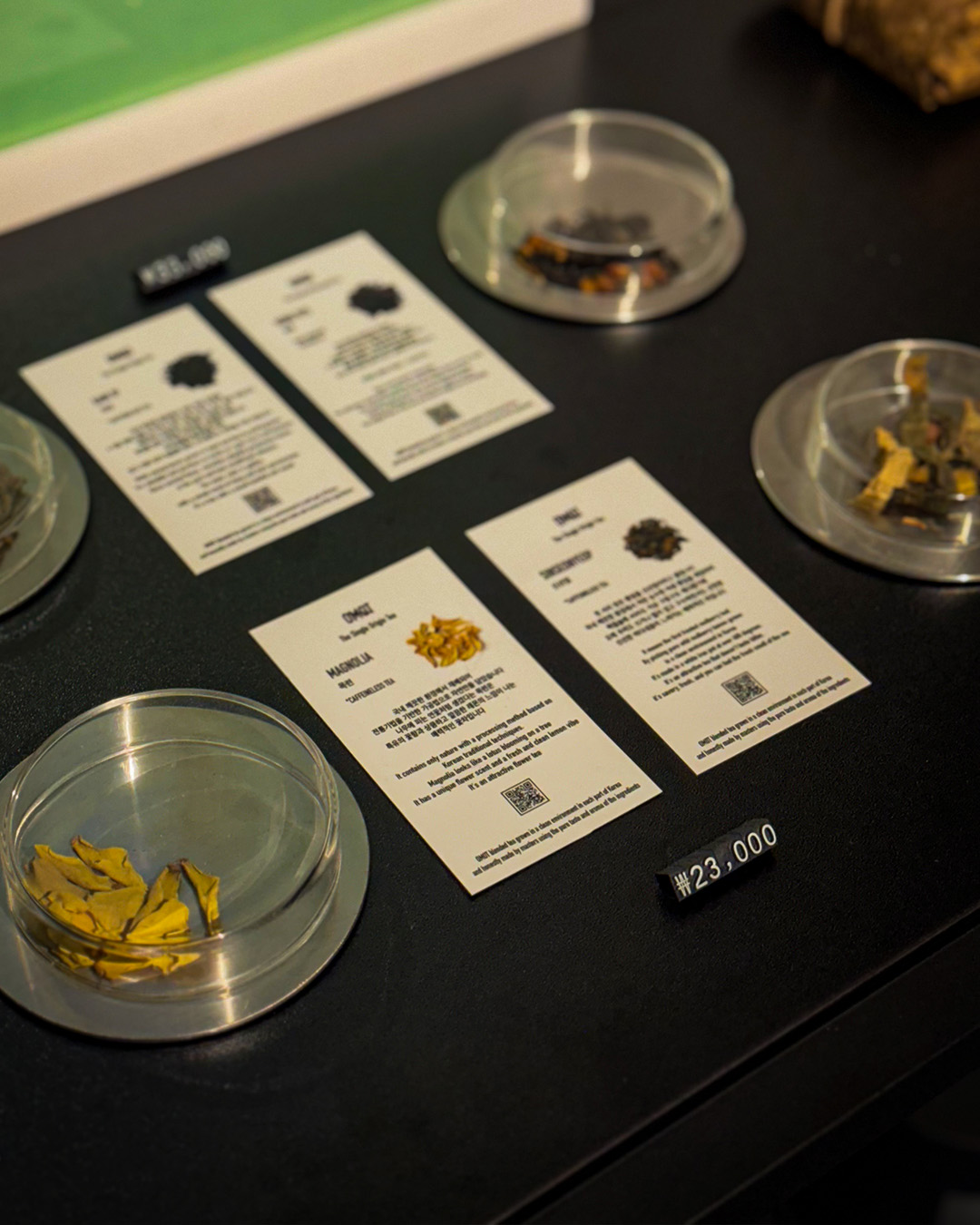 우려낸 찻잎은 디스플레이로 활용되었다.