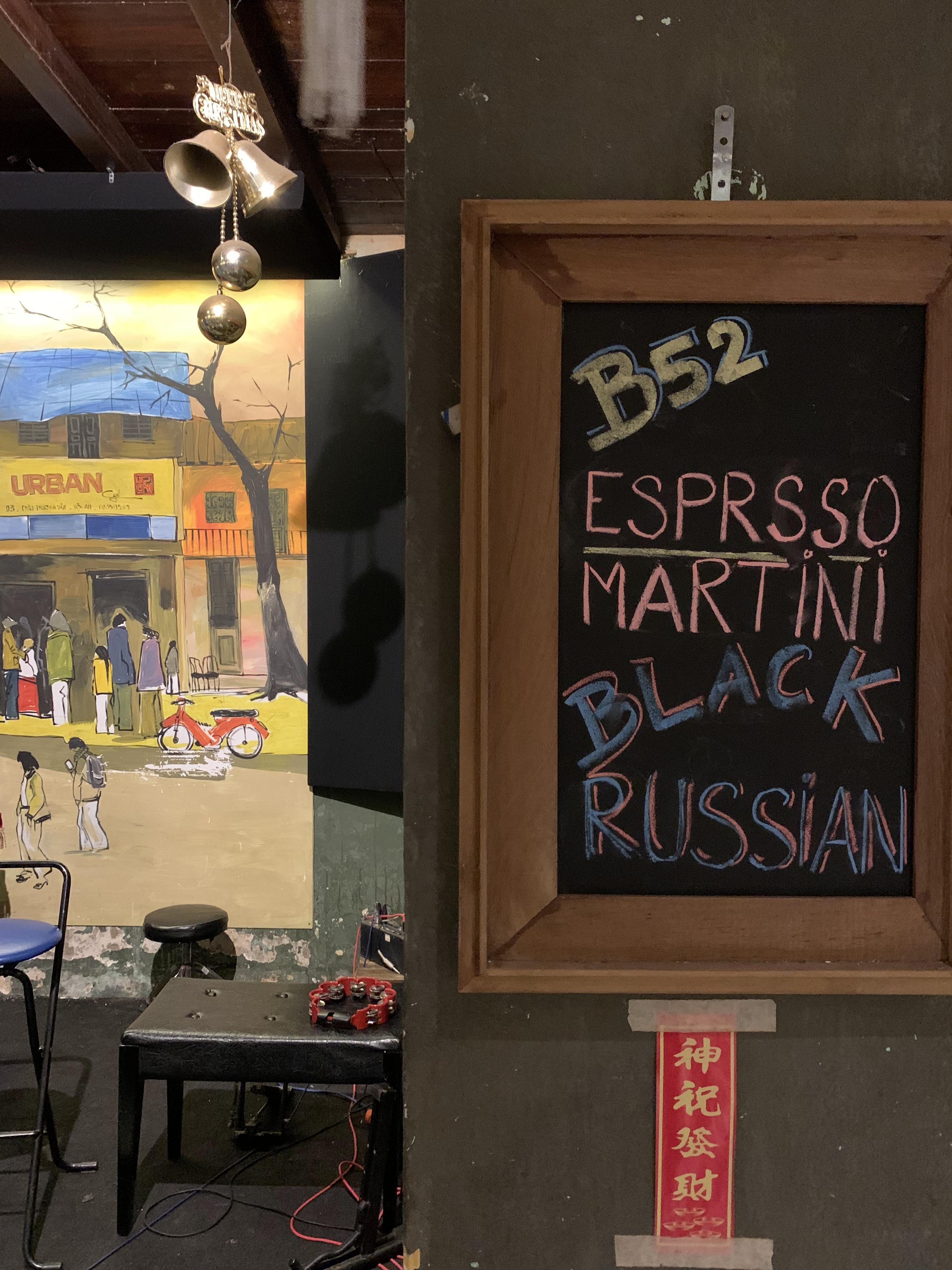 라이브 밴드 연주가 있는 카페 겸 바로 에스프레소 커피와 다양한 칵테일이 있는 가게이다.