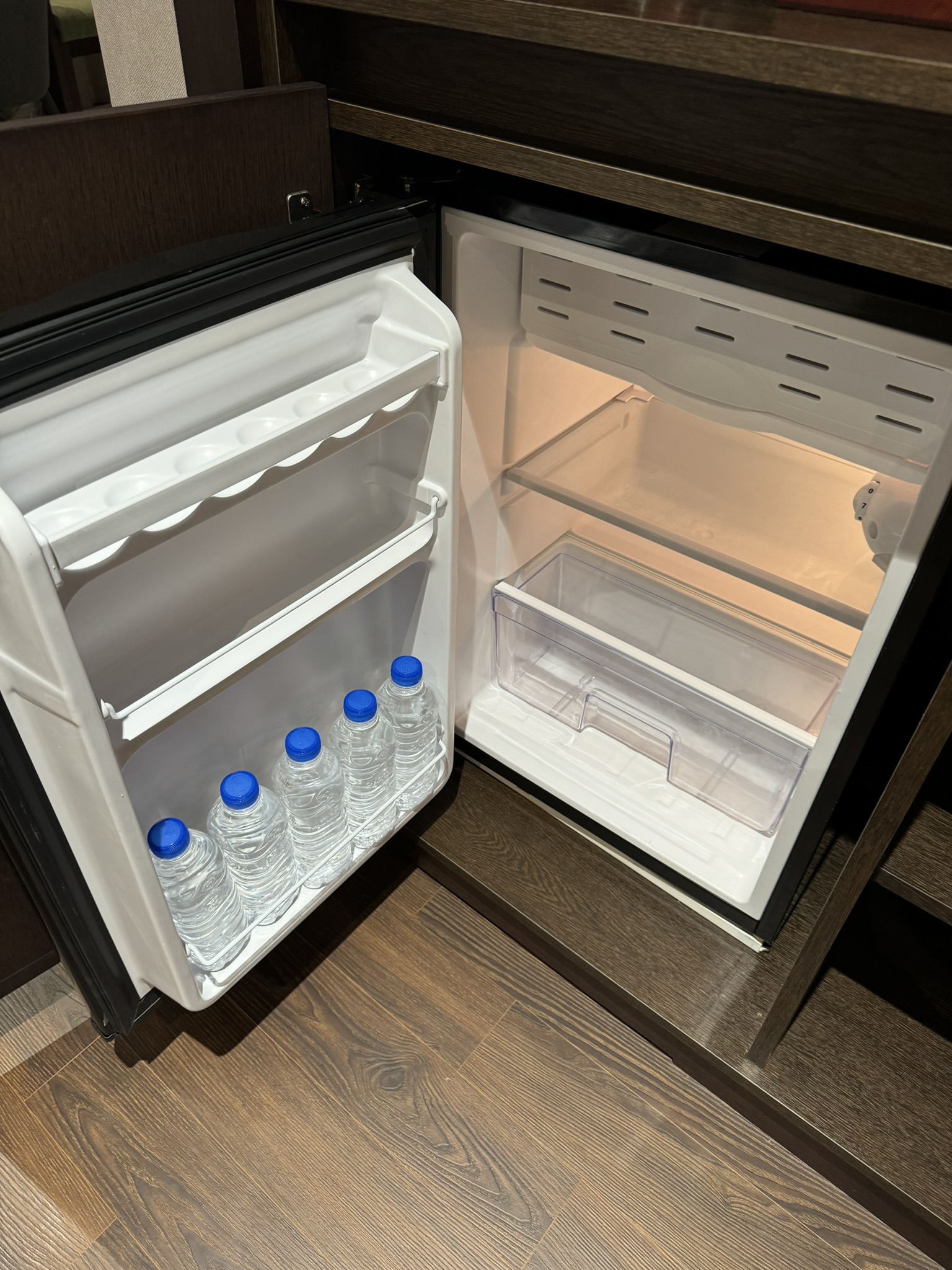 냉장고에는 생수 5통이 준비되어 있었다.