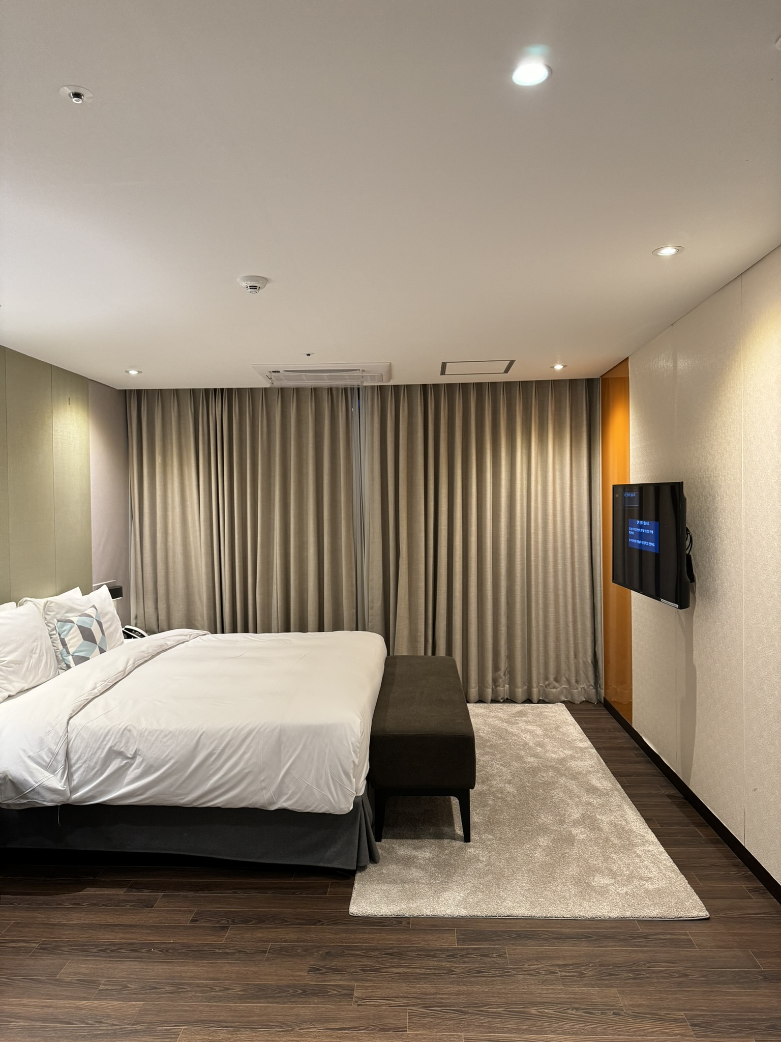 침실은 킹 사이즈 침대와 소파, 또 다른 TV가 있었다.