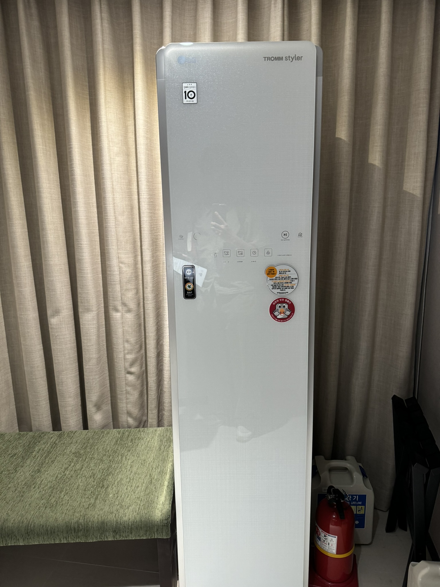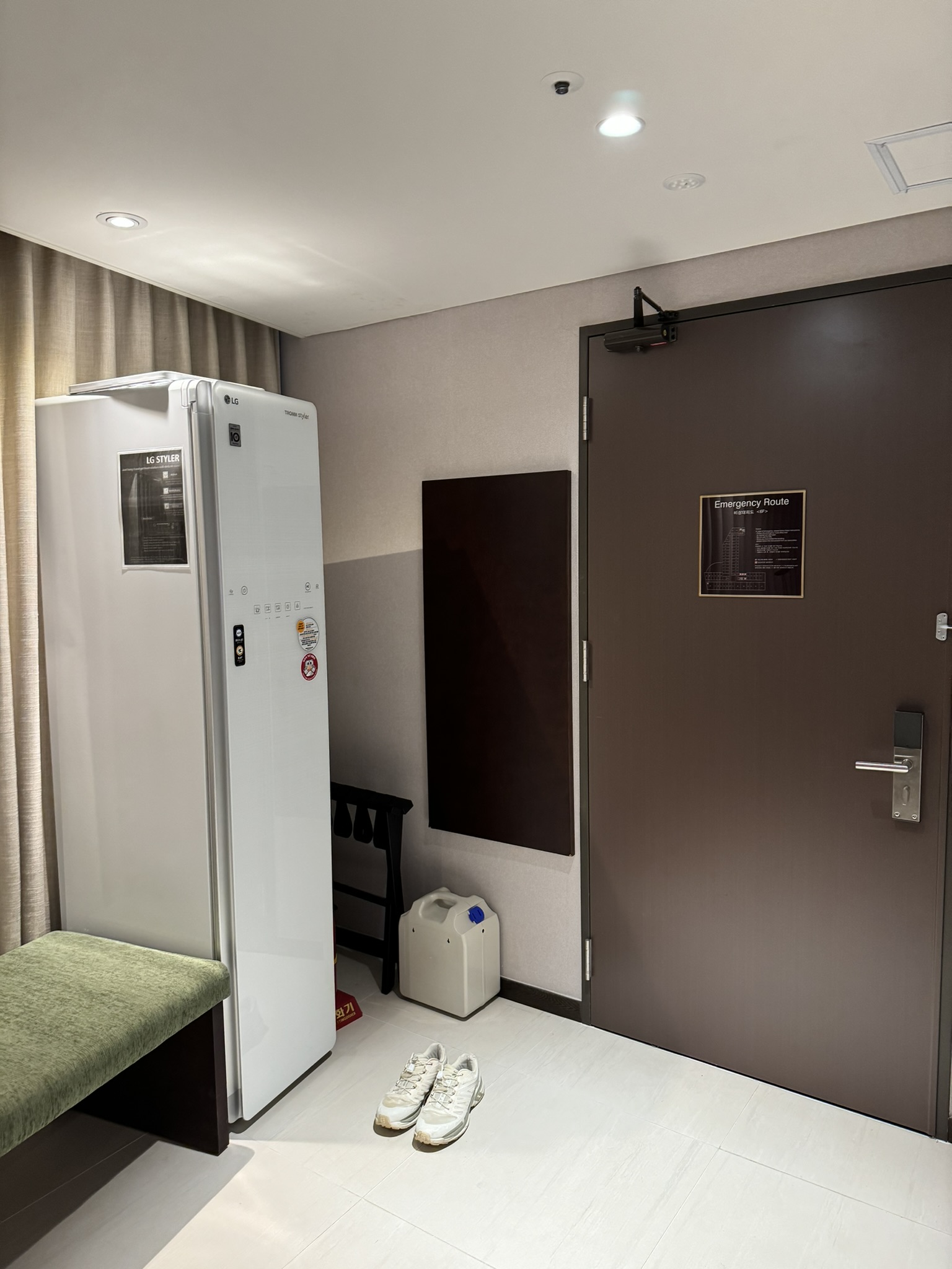 입구 바로옆에 스타일러가 있어 아우터를 보관하기에 좋았다.