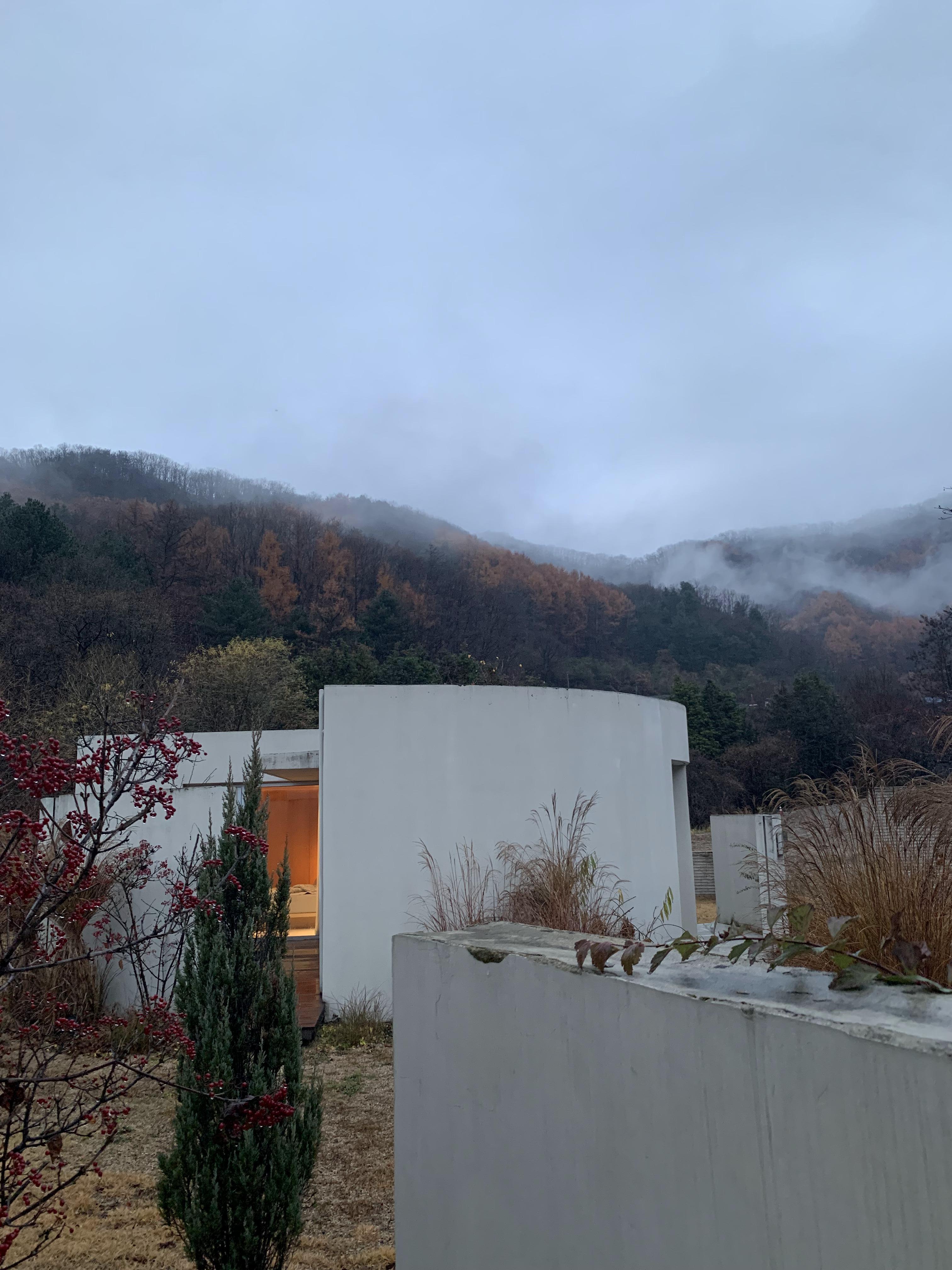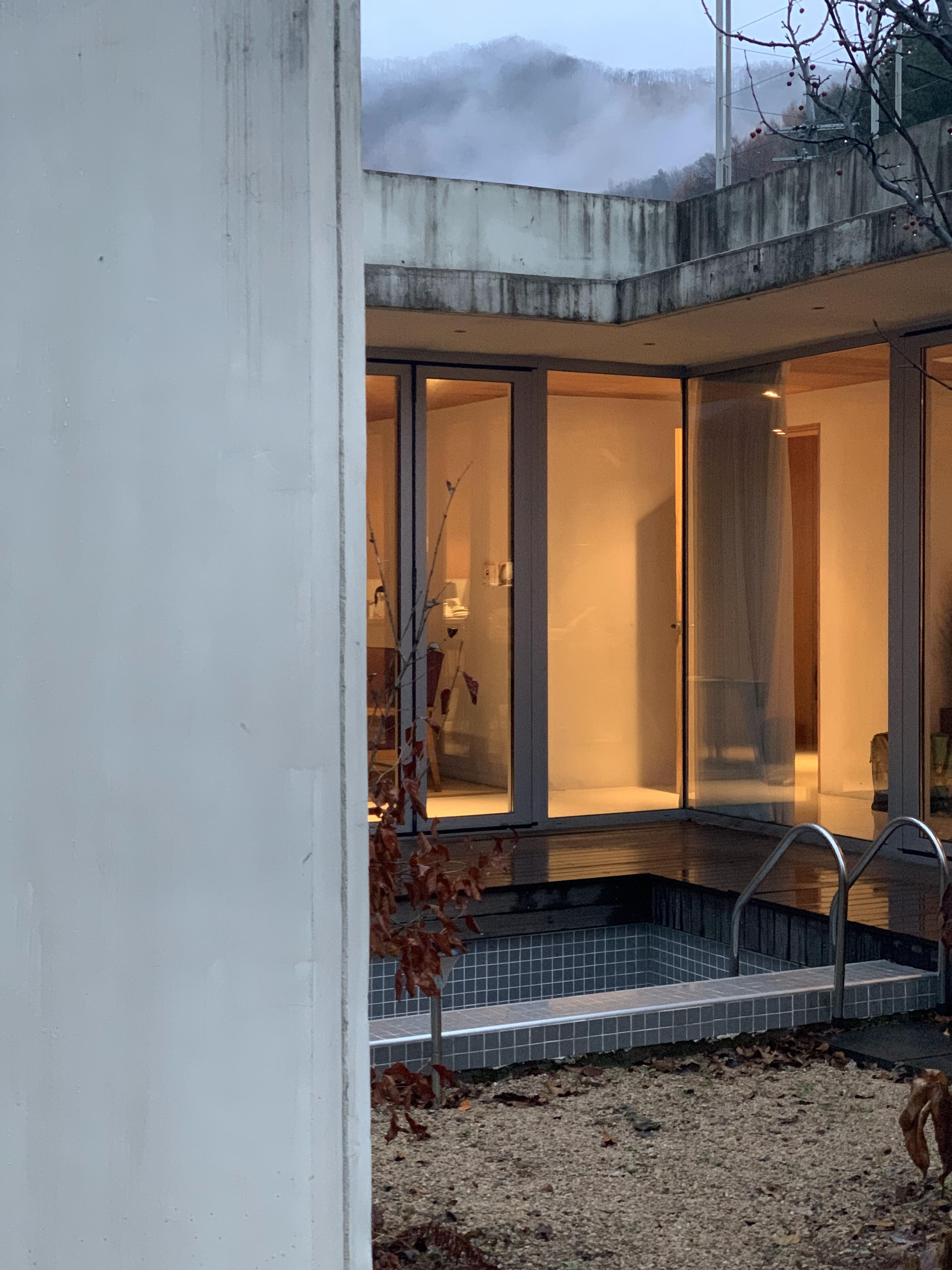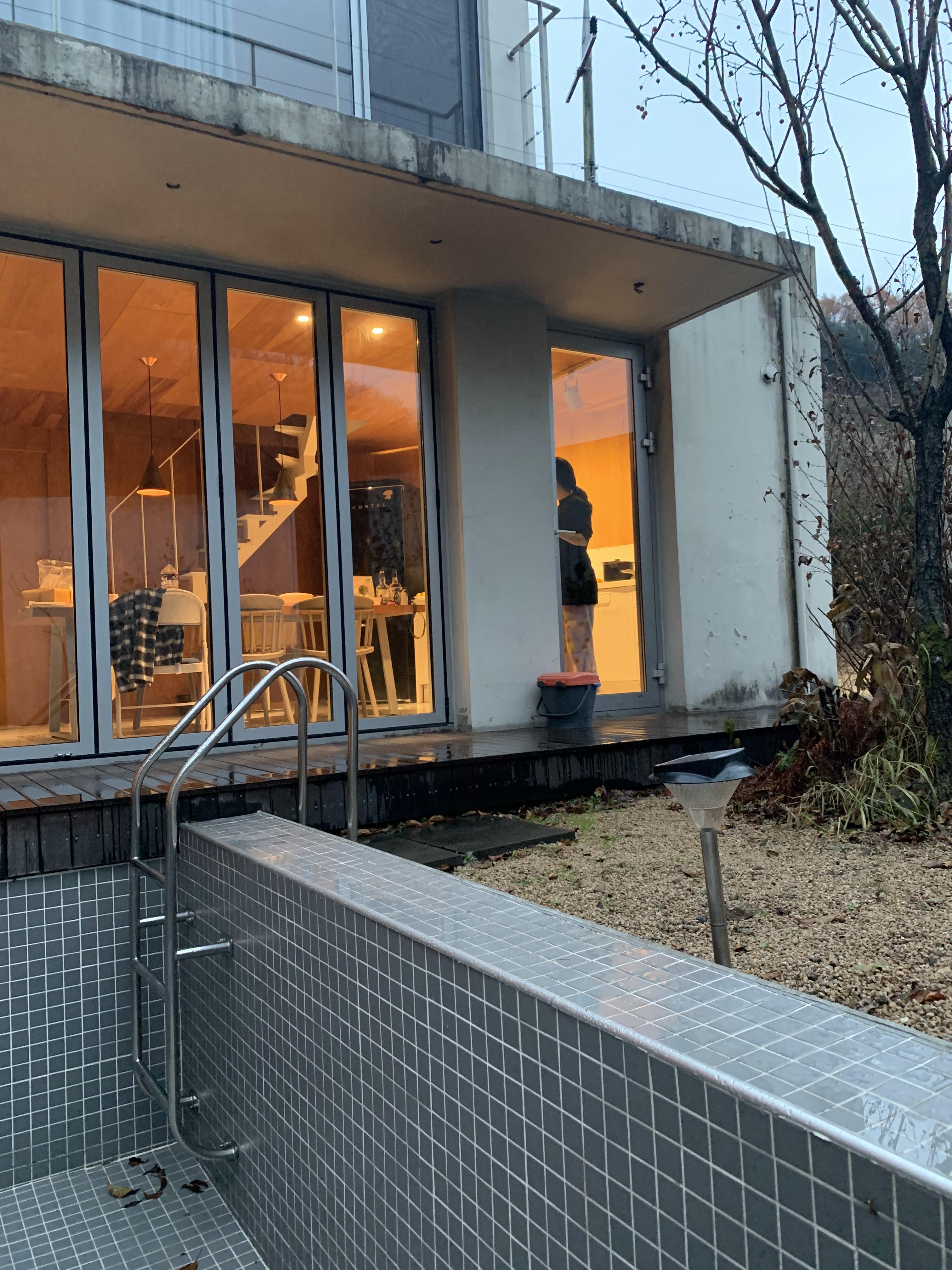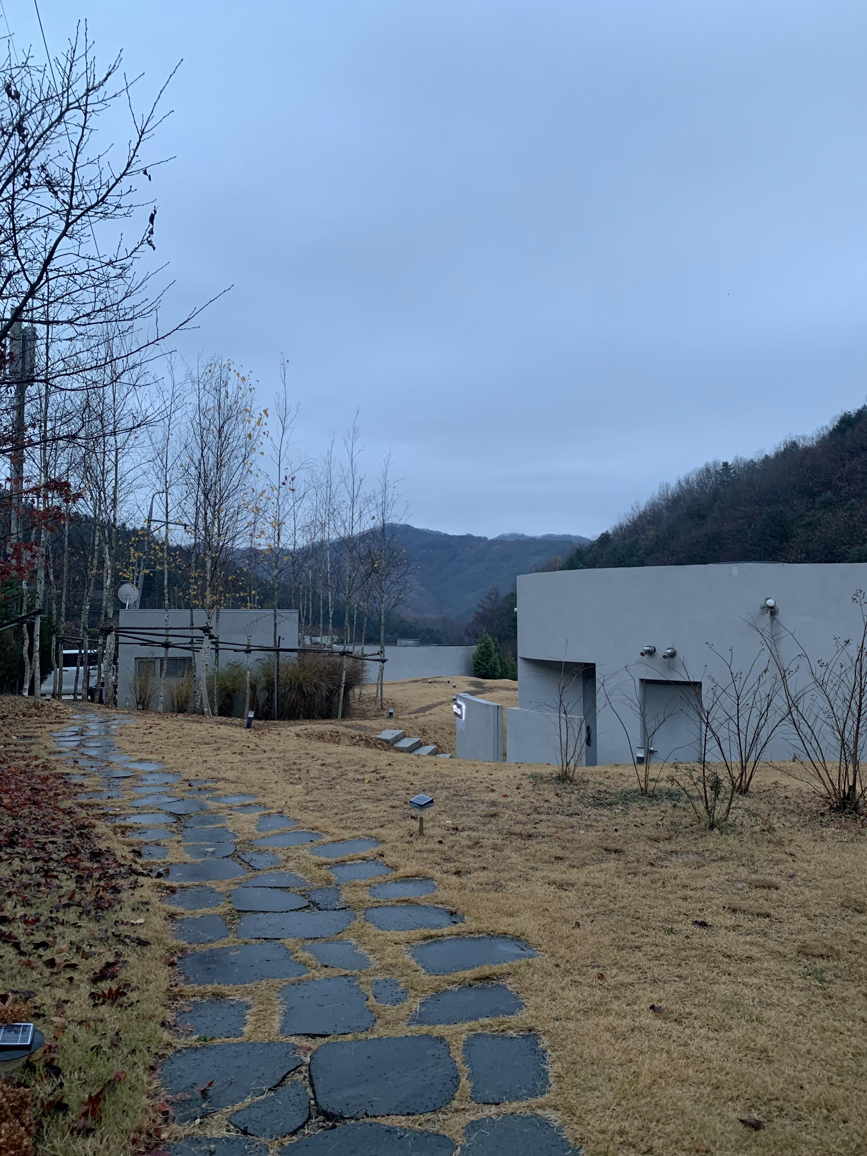 아침에 기상해서 찍은 마지막 사진. 가는날은 날씨가 좋았다. 늦잠을 자버려 후다닥 나와서 많은 사진을 남기지 못한것이 아쉬움..! 1라운드는 실내에 자쿠지가 없었다. 예약 사이트 또는 인스타를 통해 각 동마다의 사진과 구성을 확인 할 수 있으니 기호에 맞게 체크해서 선택하는 것이 좋겠다!
