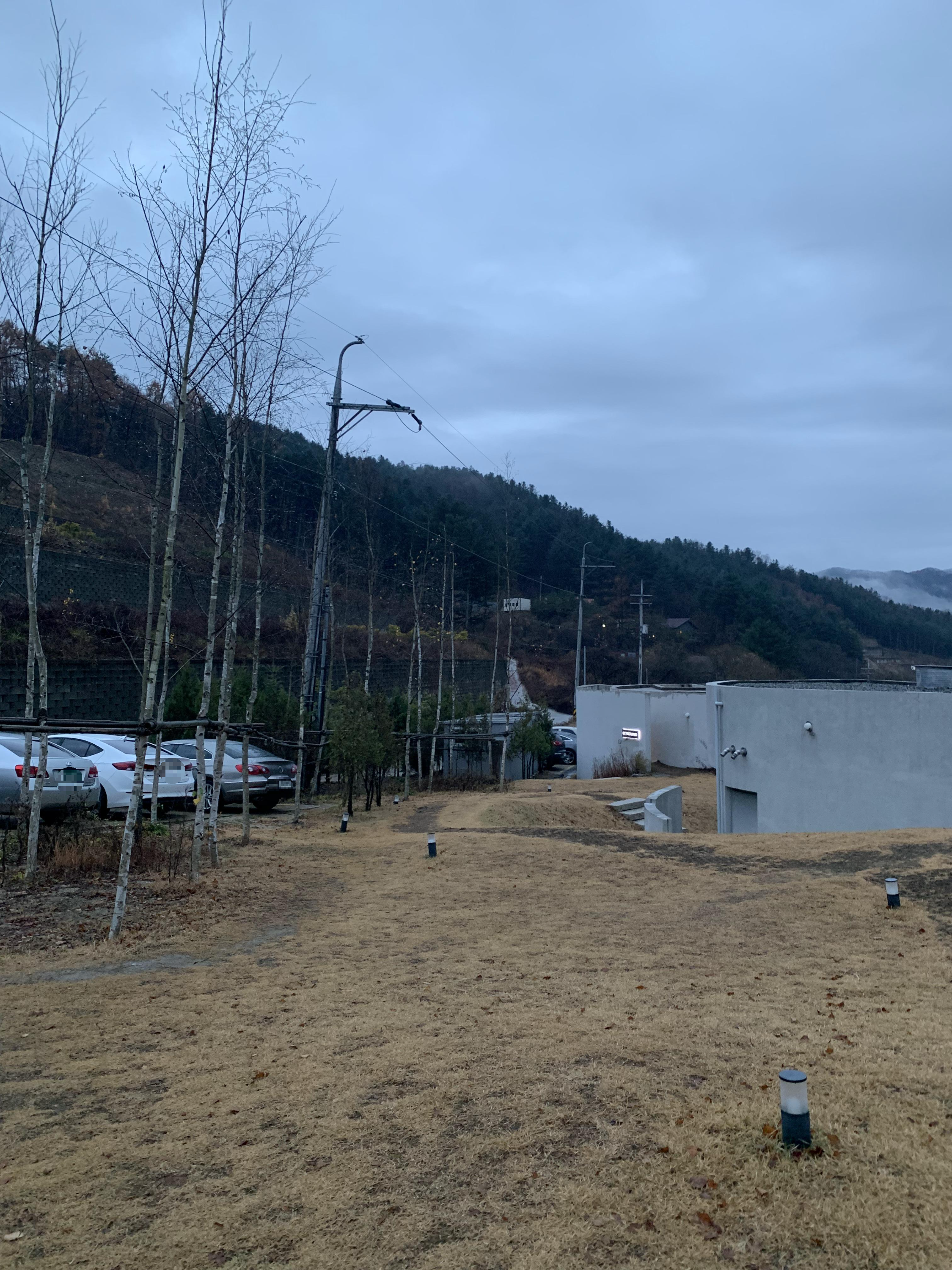 올라오는 길이 1차선이고 비포장 도로도 있어 도착하기 직전까지 여기가 맞나? 할 정도의 도로를 따라 올라오면 올라운드원이 반겨준다. 주차장은 잘 준비되어 있었다. 11월에 다녀온 후기라 푸릇푸릇한 나무와 풀은 없지만 겨울의 초입 느낌이 나는 자연의 모습 또한 좋았다.